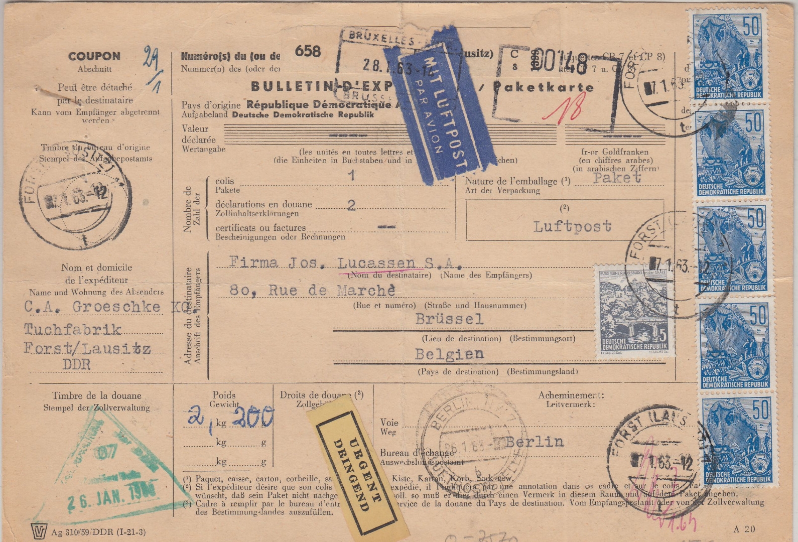 gelaufen n. Brüssel - Formular senkr. Mittelbug