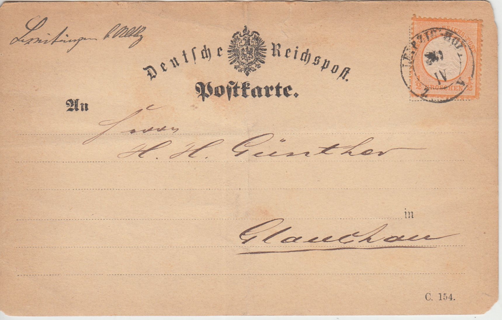 hds. Ortsaufgabe Breitingen (?) - gelaufen n. Glauchau - Karte kl. Alters-/Gebrauchsspuren