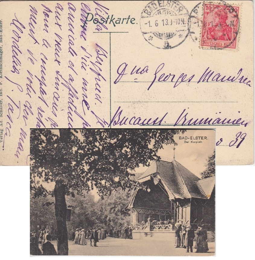 DR - 10 Pfg. Germania Karte n. RUMÄNIEN Bad Elster - Bukarest 1913