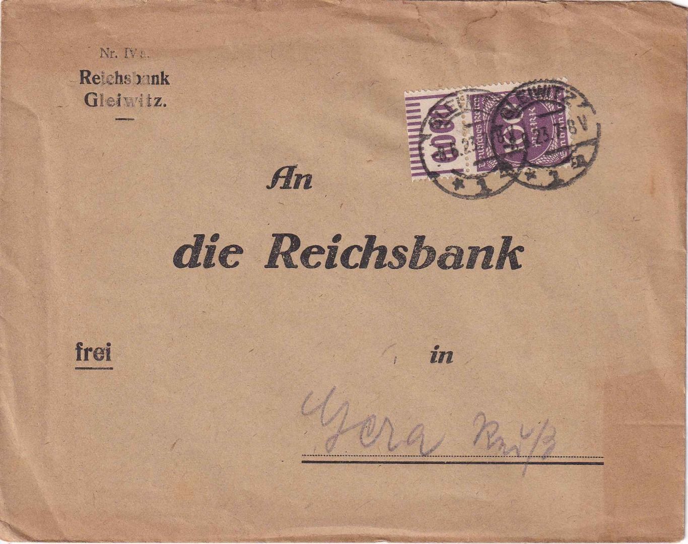 DR - 100 M. Ziffer Walze/Oberrand Brief Gleiwitz - Gera 8.6.23