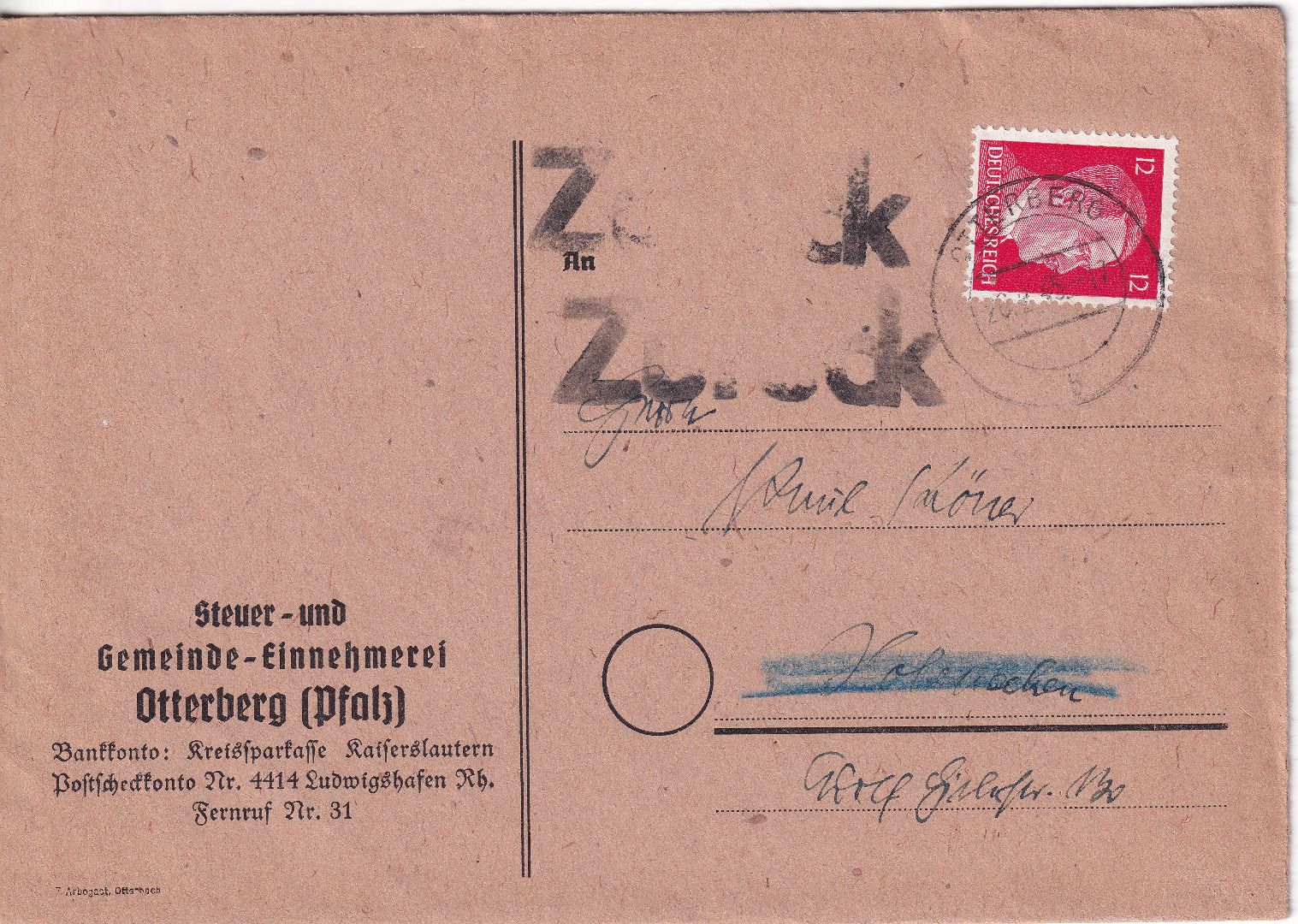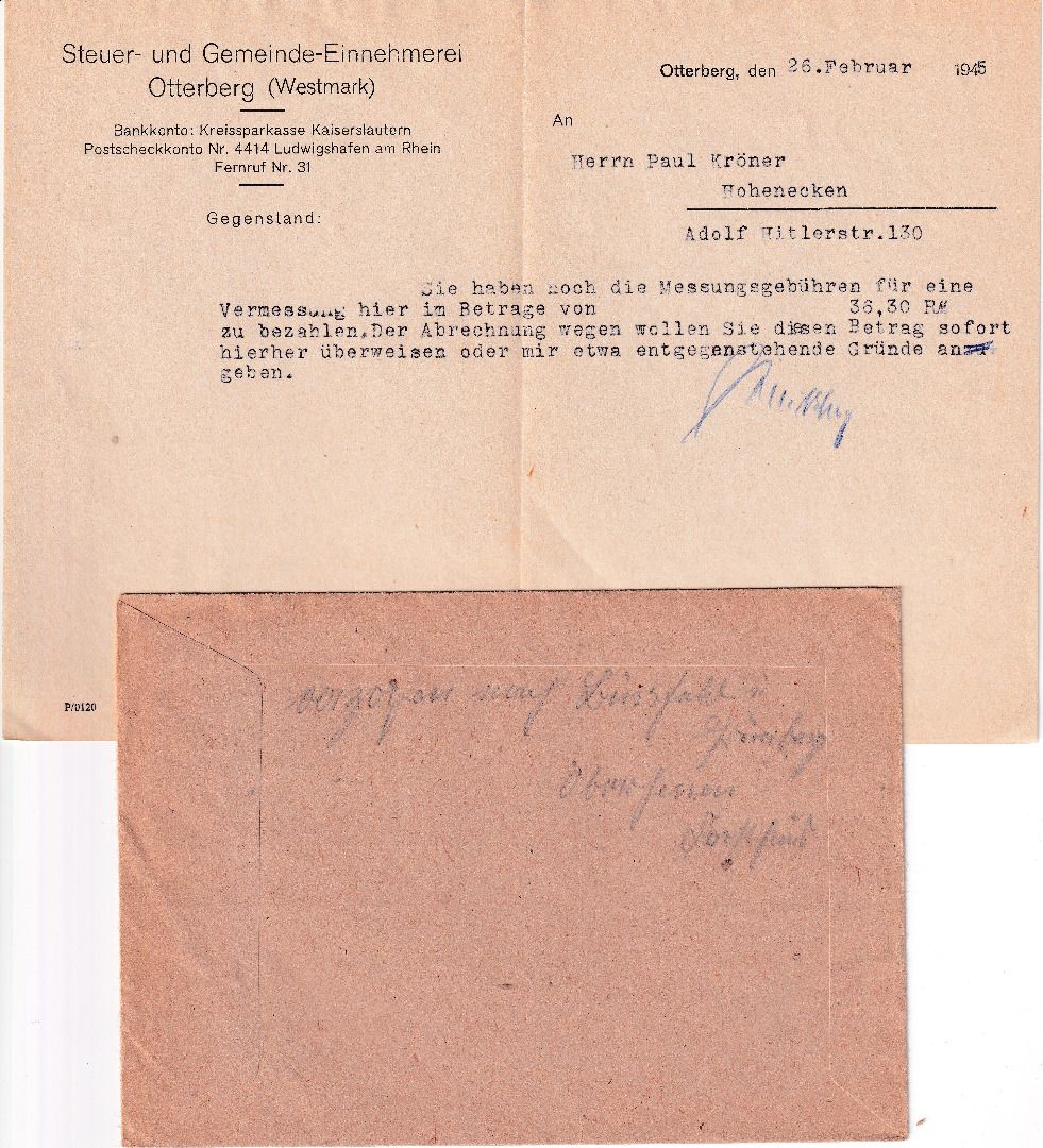 mit Inhalt - rs. hds. Vermerk "verzogen nach ...."