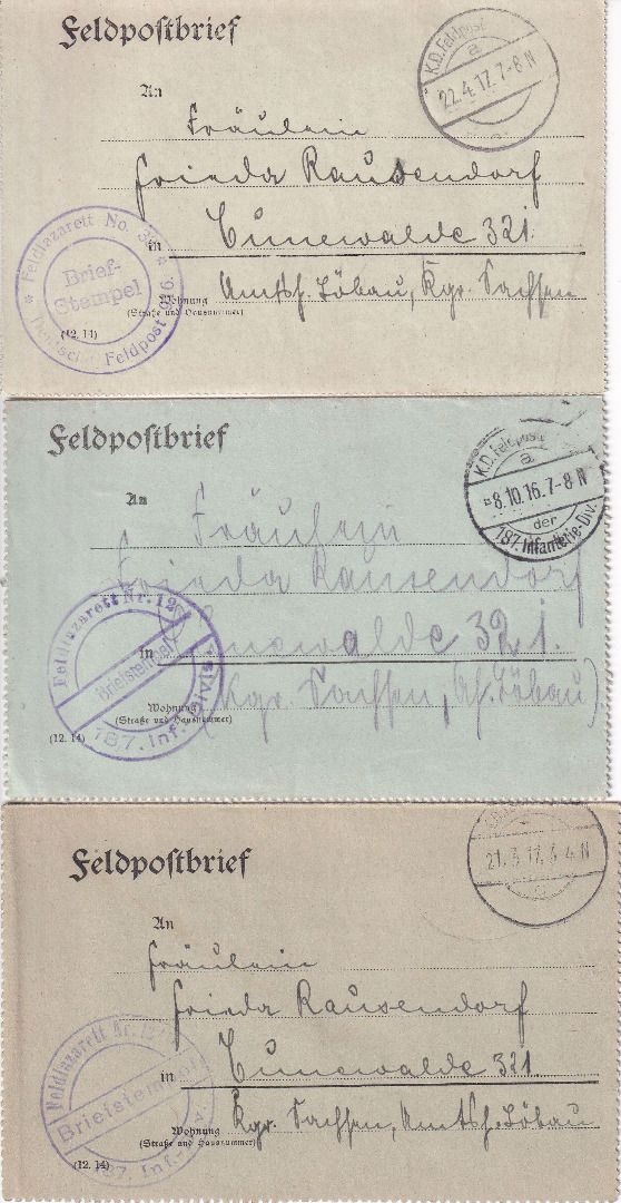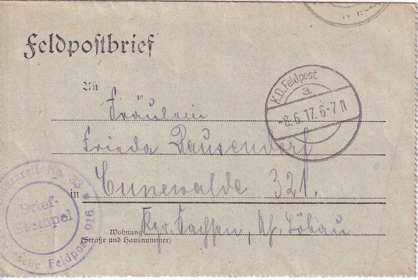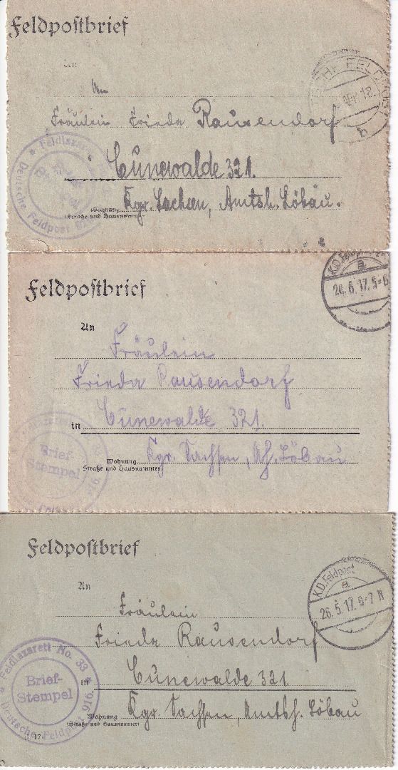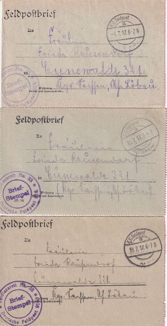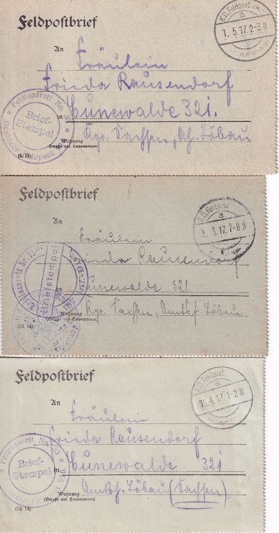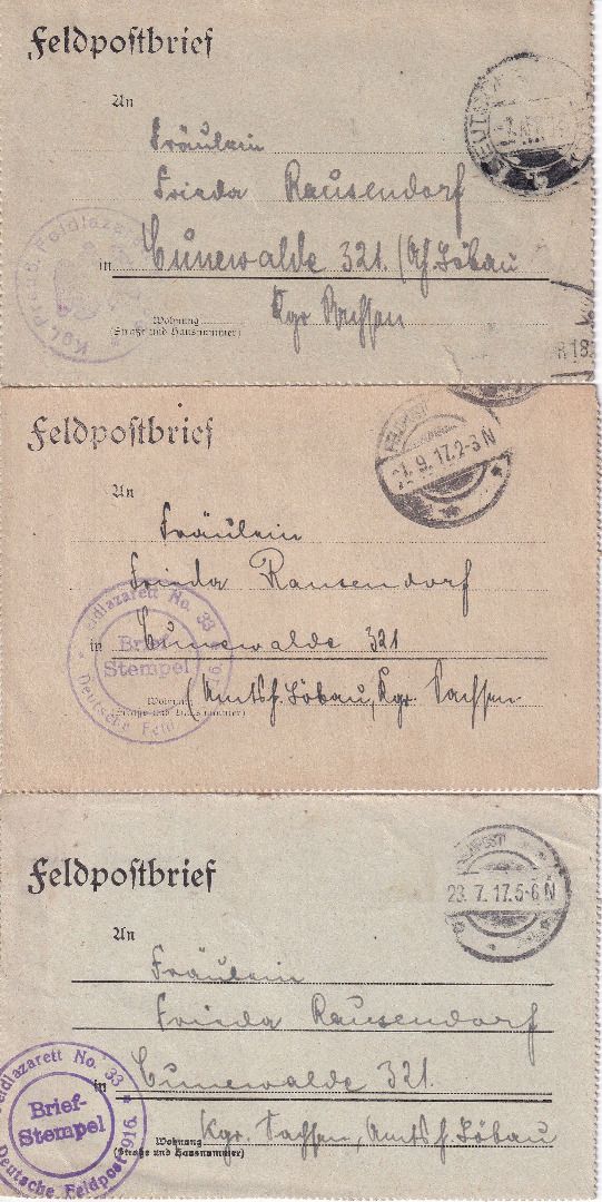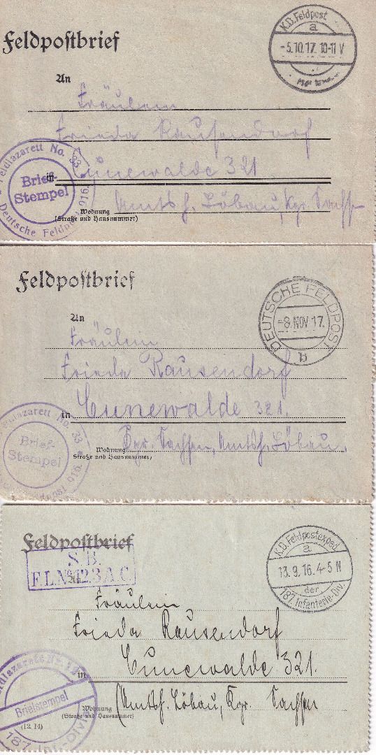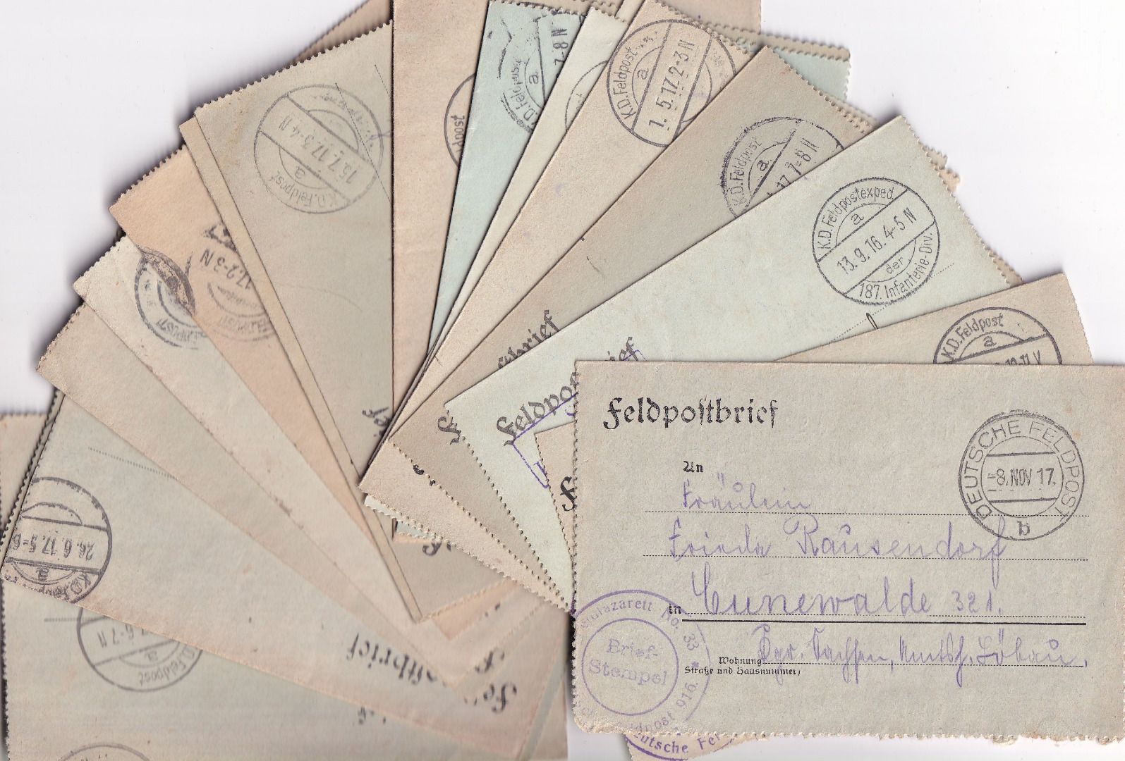 Korrespondenz eines Vizefeldwebels, alle 19 Kartenbriefe mit Inhalt - Briefstempel: Feldlazarett Nr.12 187. Inf.Div., Feldlazarett No.33 Dt. Feldpost 916,