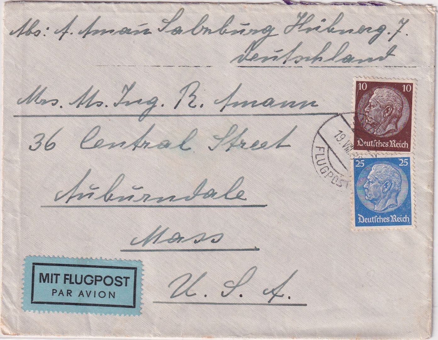 DR - 25+10 Pfg. Hindenburg Luftpostbrief n. USA Salzburg - Auburndale 19.8.39