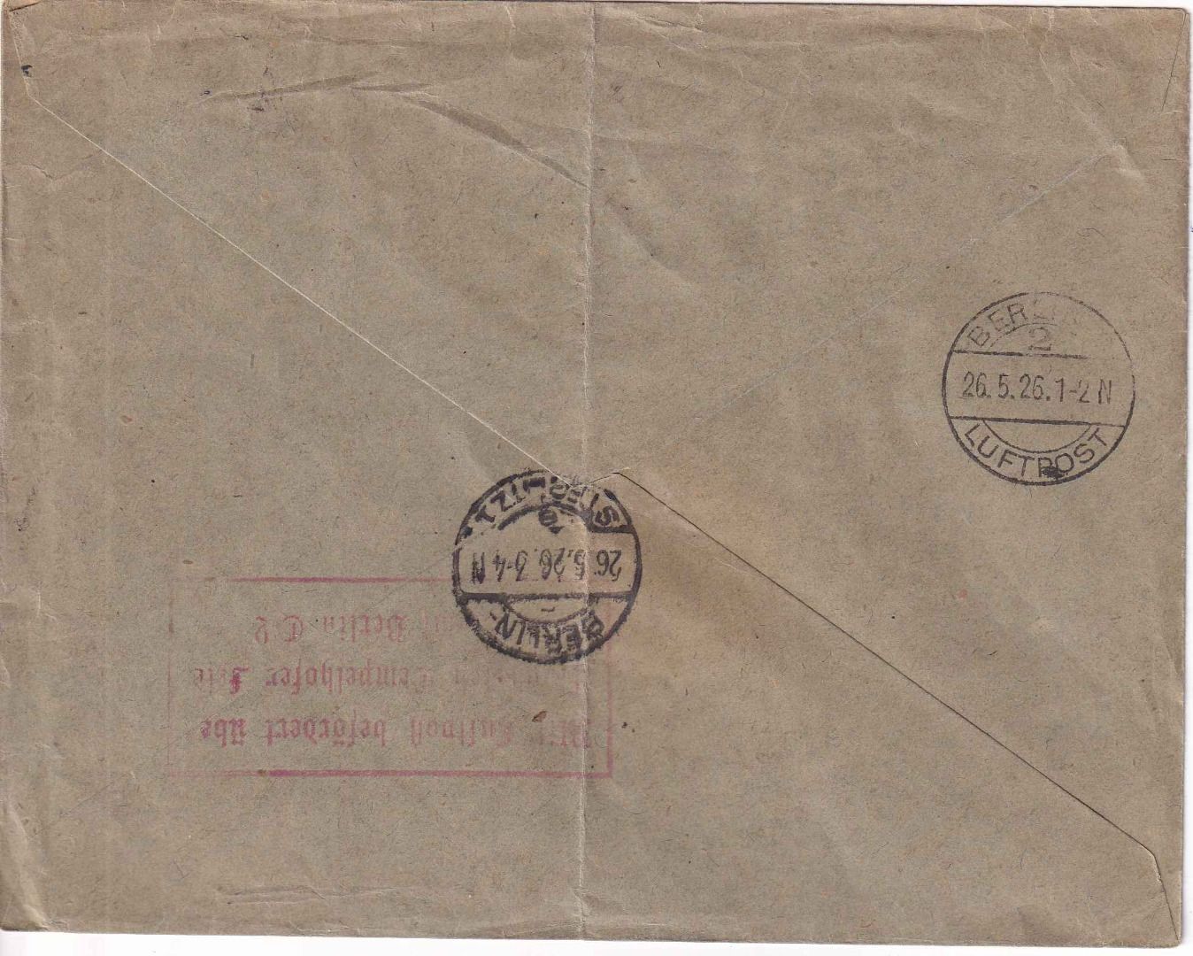 Leitvermerk "Mit Luftpost Essen-Berlin" - rs. Flugbestätigungsstempel Tempelhofer Feld (etwas zart abgeschlagen) - ohne Inhalt