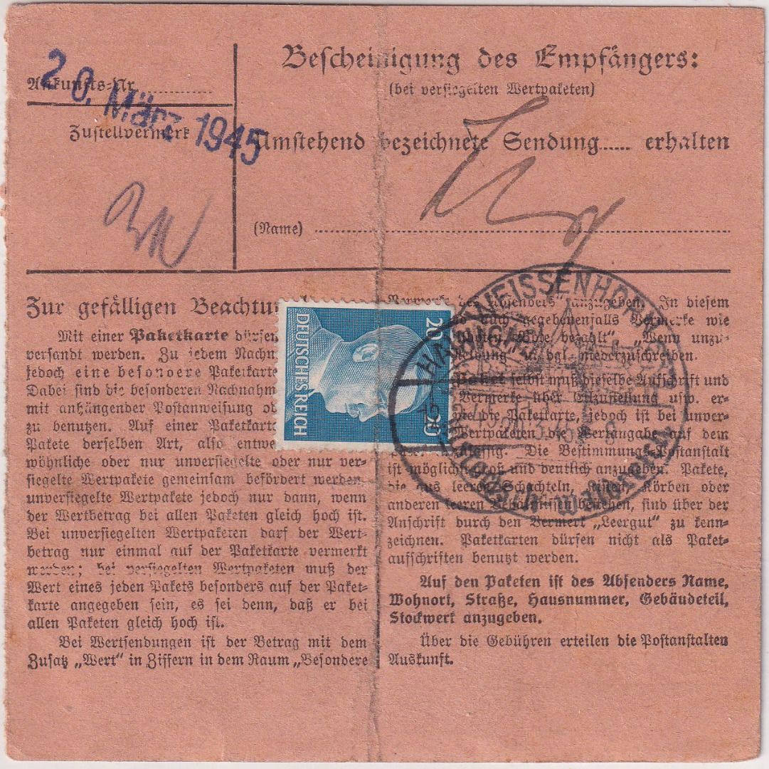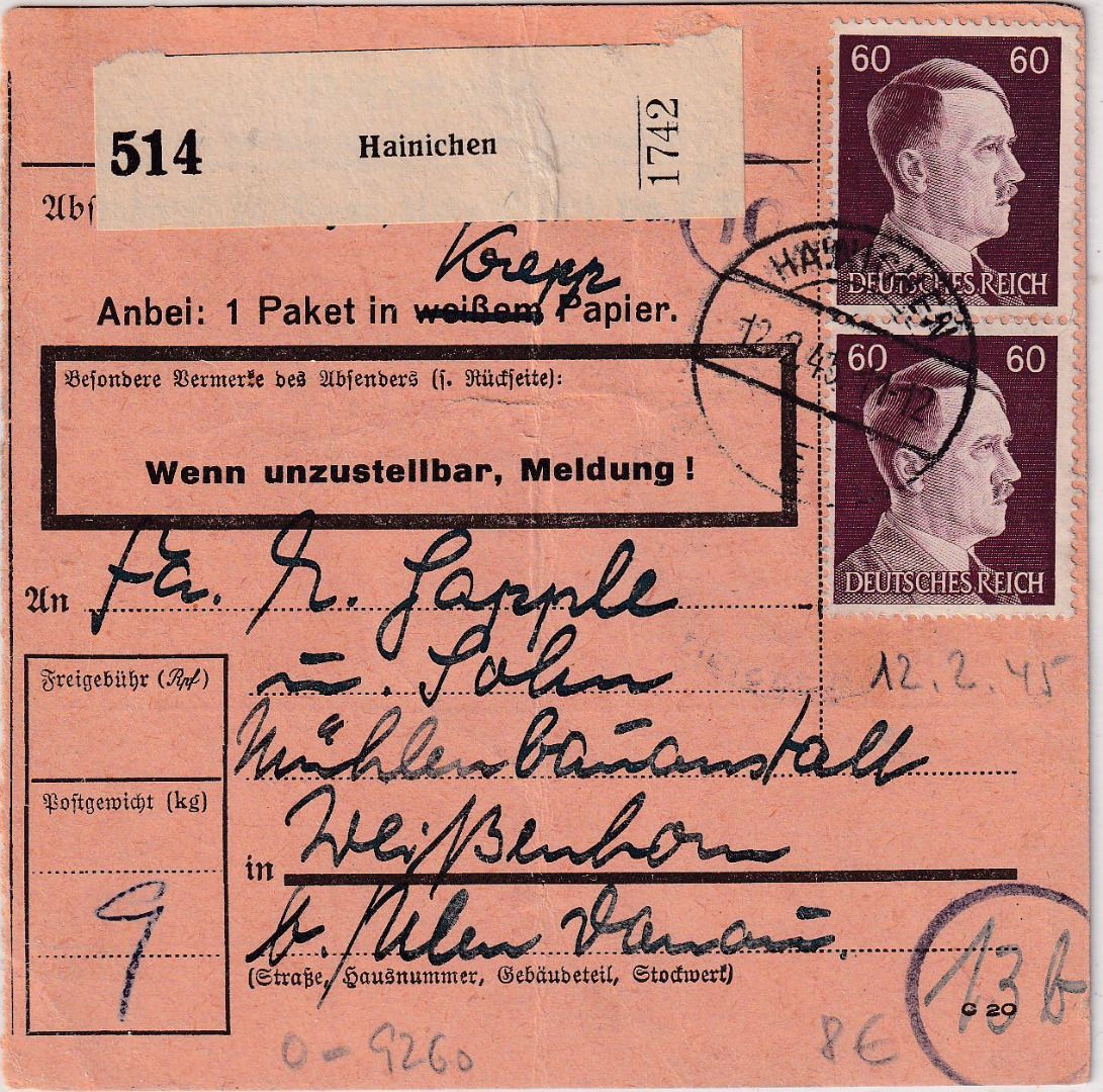 Paketkarte senkr. Mittelbug