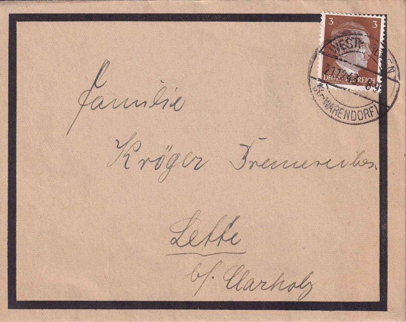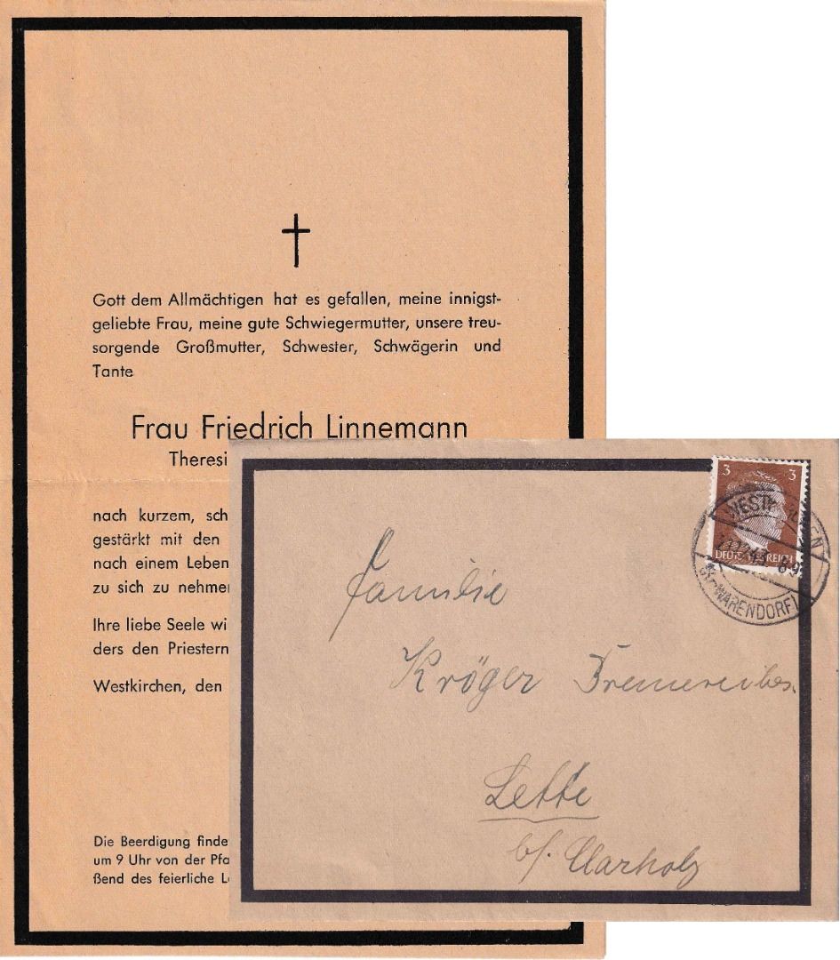 DR - 3 Pfg. AH Trauerdrucksache Westkirchen (Bz. Warnedorf) - mit Inhalt