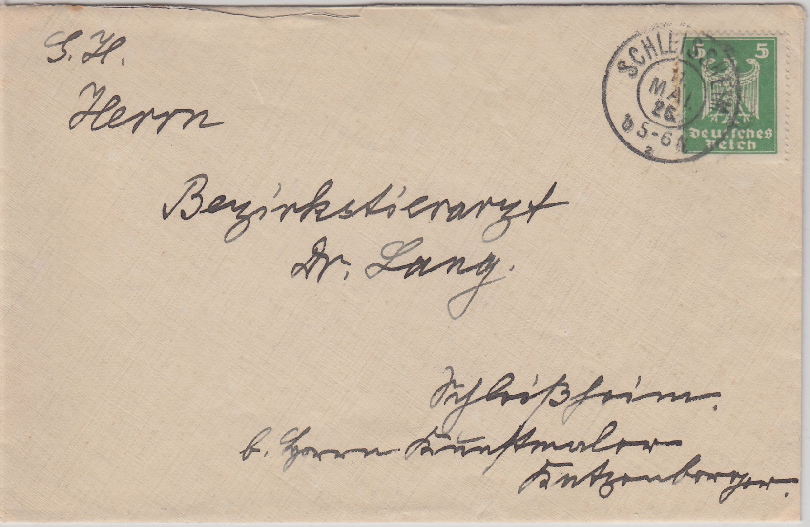 DR - 5 Pfg. Adler Ortsbrief K2 Schleissheim 11. Mai 26