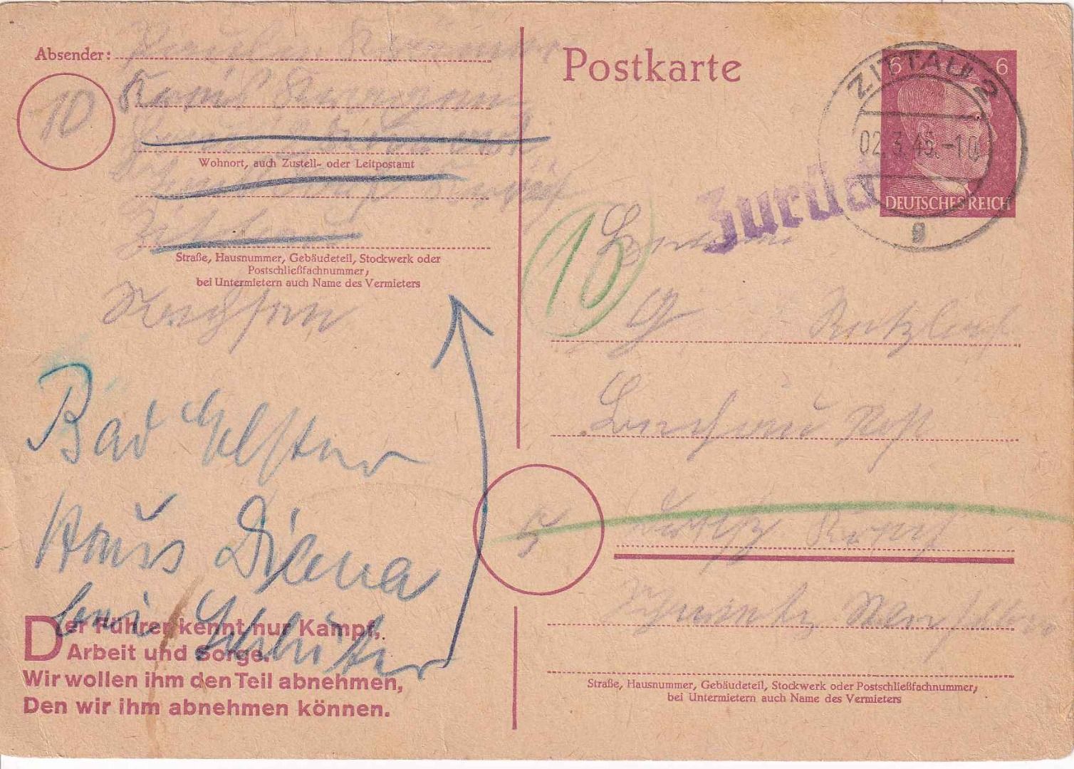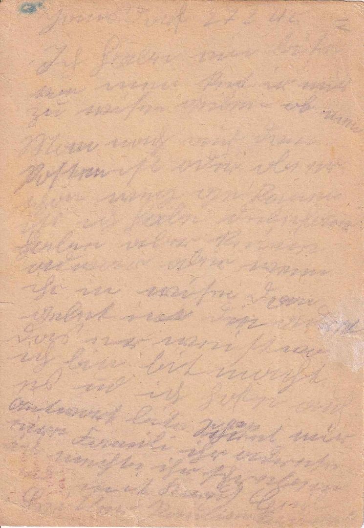 geschrieben in Johnsdorf (27.2.45) - ohne weiteren Hinweis nach Bad Elster zurück-/weitergesandt - Info: Schwetz wurde am 13. Februar 1945 von der Sowjetarmee besetzt