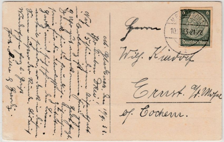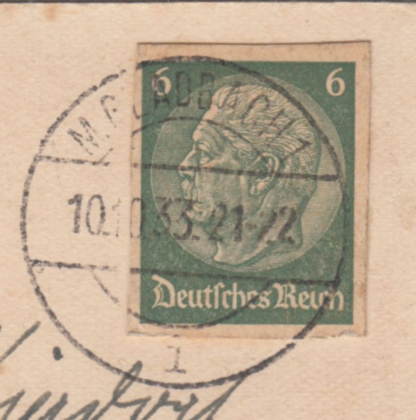 DR - 6 Pfg. Hindenburg GA-Ausschnitt Karte M.Gladbach Erfurt 1933