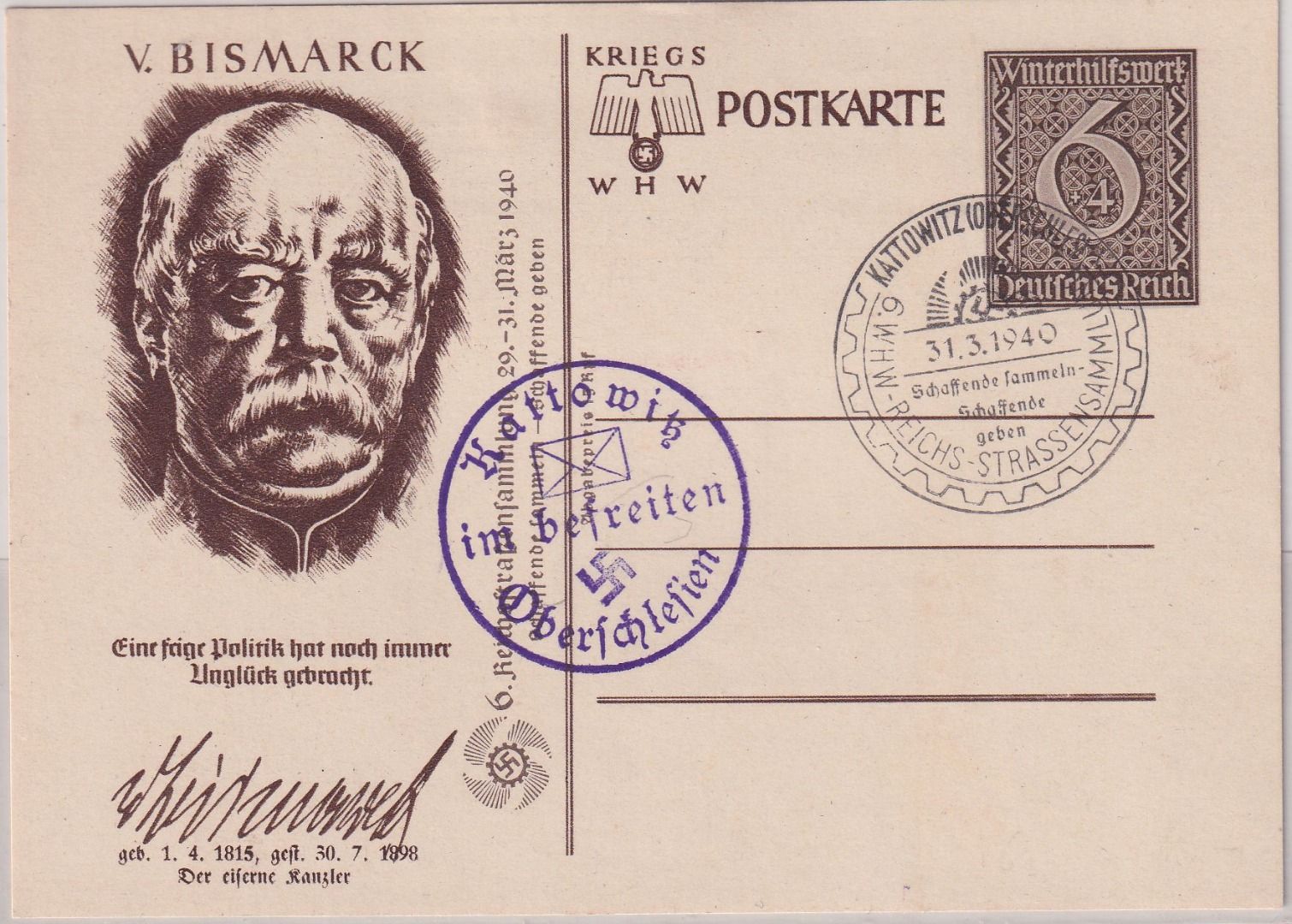 Nebenstempel: "Kattowitz im befreiten Oberschlesien" - ungelaufen