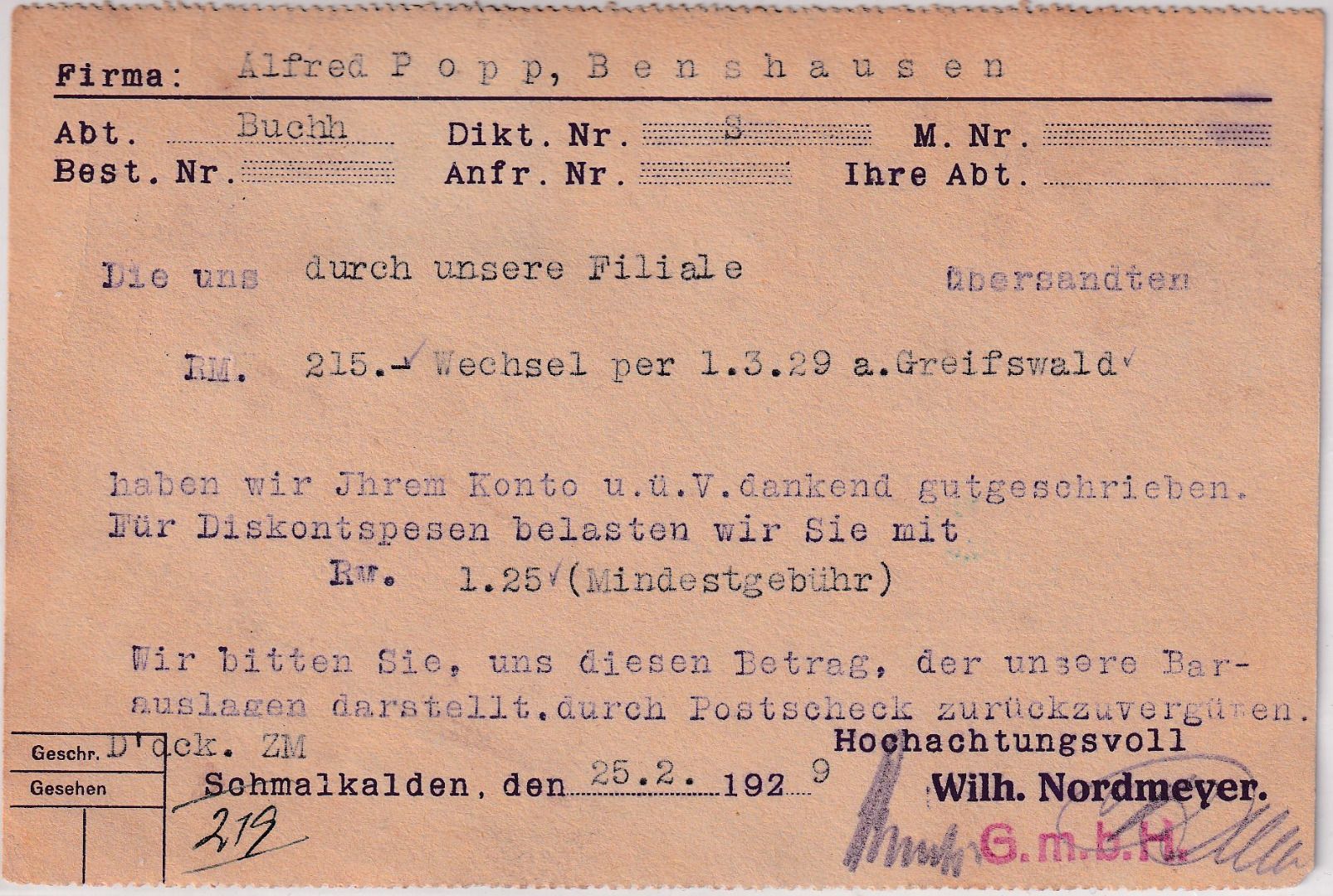 Firmenlochung "WN" = Wilh. Nordmeyer, Großhandlung Eisen, Stahl, Metall u. Packpapier