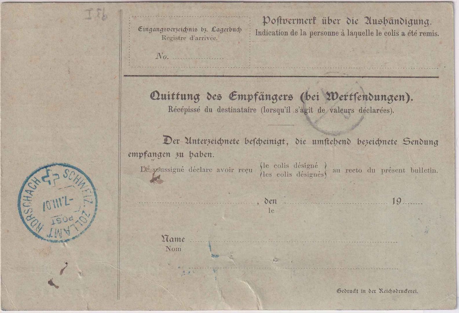 Leitzettel "Konstanz" (Bodensee-Schiffspost !) - rs. Zollstempel Rorschach