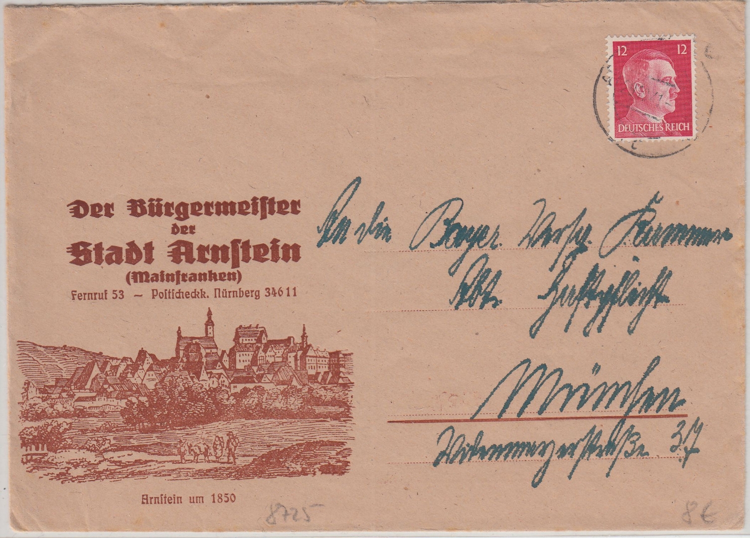 DR - Arnstein 1941 illustrierter Werbeumschlag d. Bürgermeisters n. München