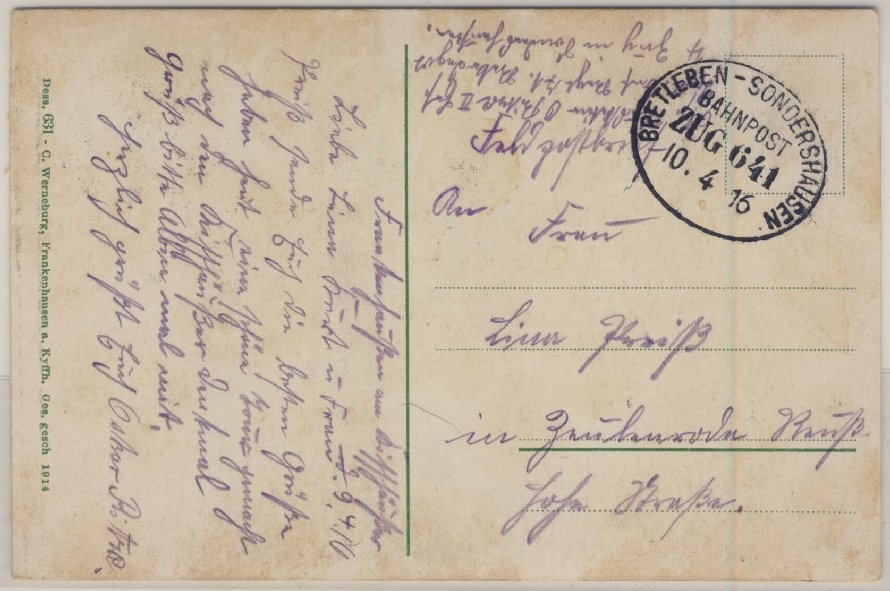 Zeulenroda 1916 - rs. Farbansicht - Karte leicht fleckig - möglicher senkr./waagr. Farbstreifen = Scan-Fehler