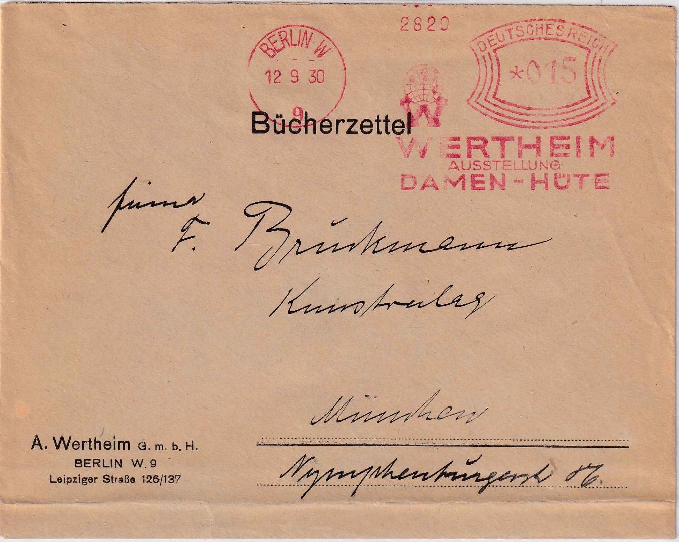ohne Inhalt - Stichwort: Mode, Textil, Bekleidung, Judaika - Kuvert unten waagr. Bugspur