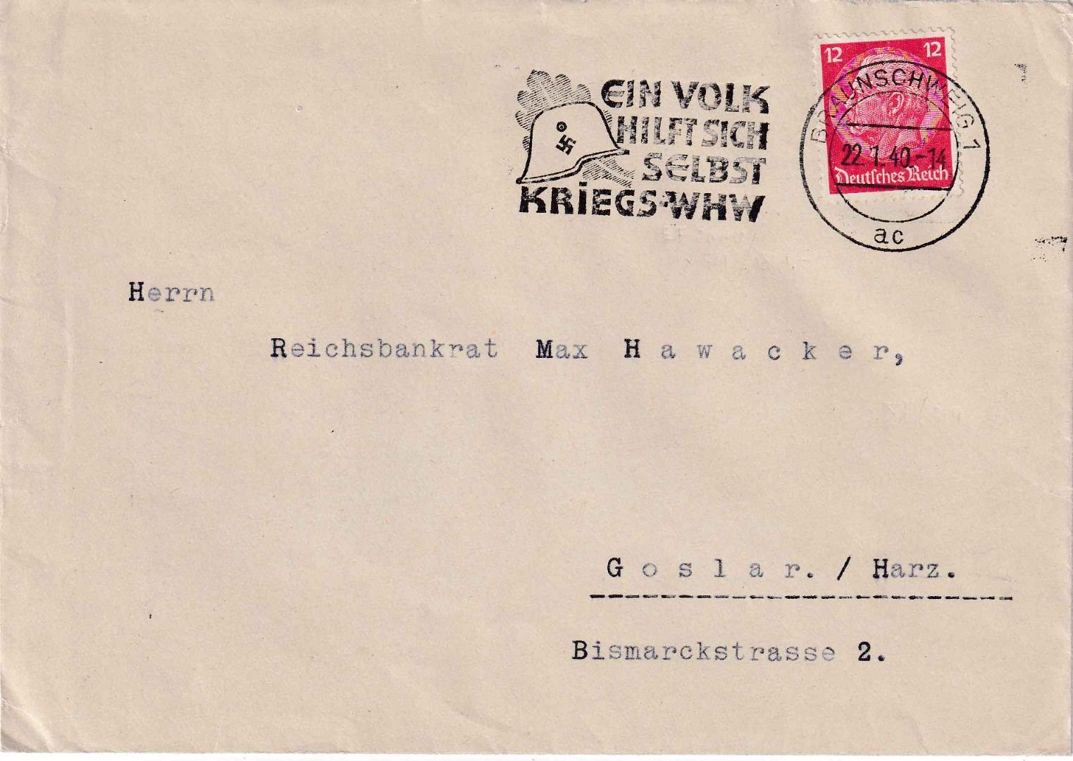 DR - Braunschweig 1940 Kriegs-WHW Masch.werbestpl. Brief n. Goslar