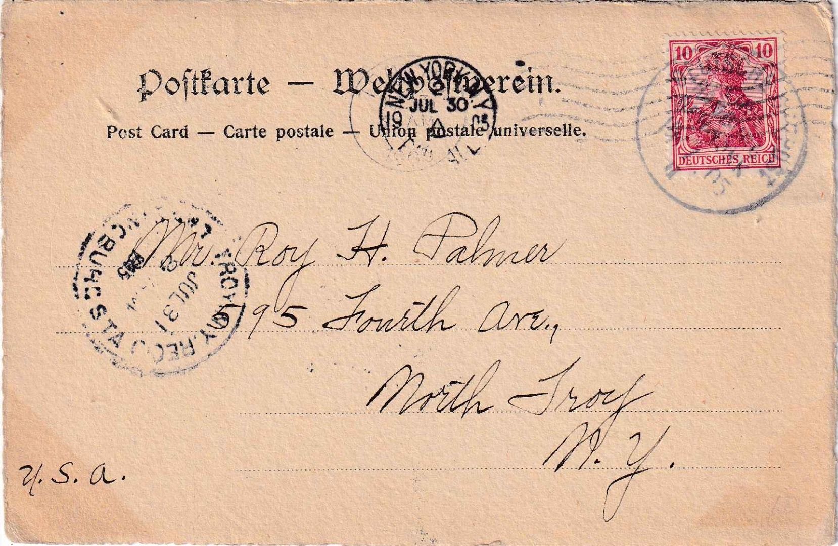 DR - Dt. Seepost Linie Hamburg New York II Karte 10 Pfg. Germania n. USA 1905