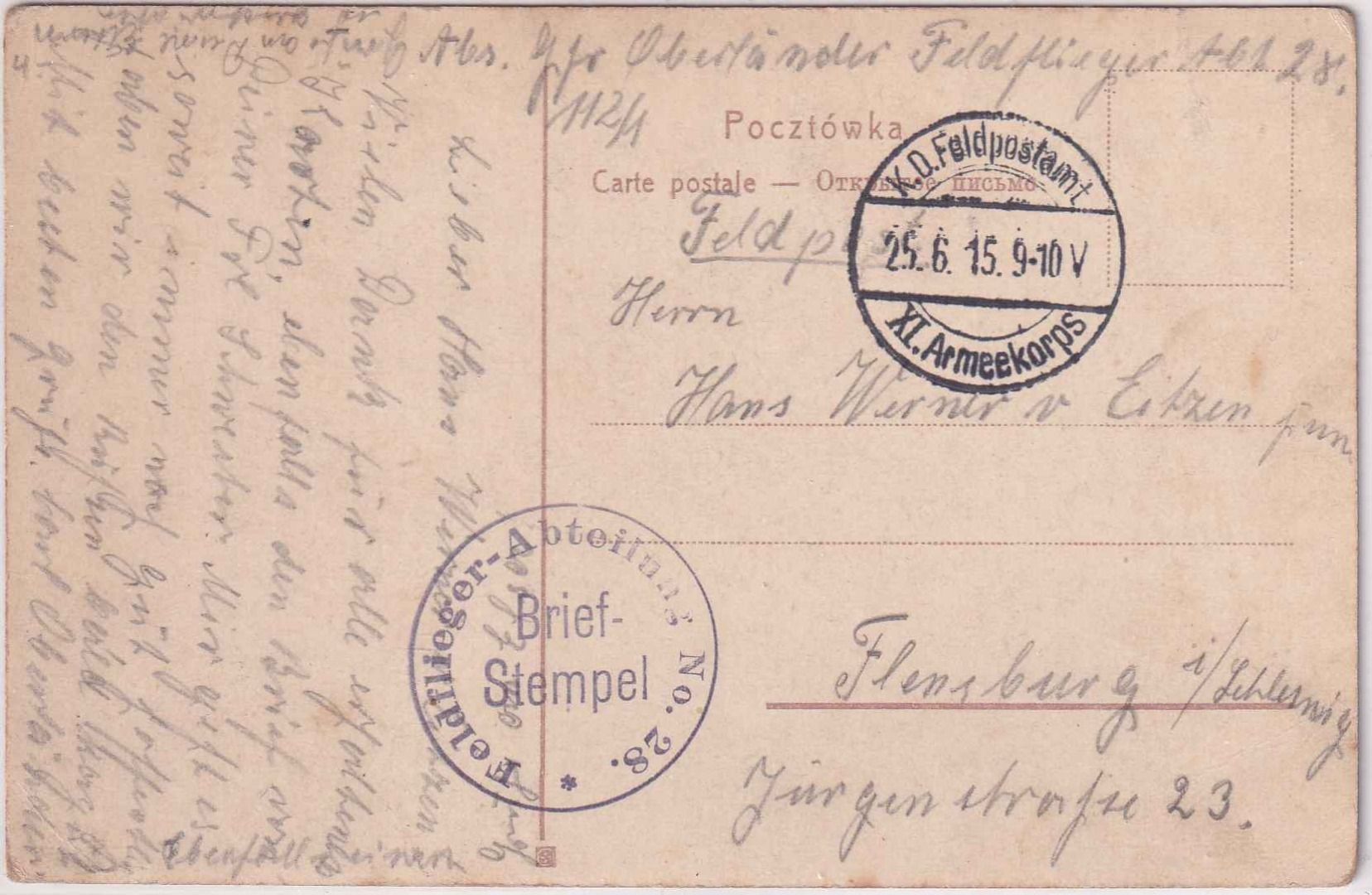 gelaufen n. Flensburg - XI.AK bis Juli 1915 in Stellungskämpfen an der Bzura (Zentralpolen - Ostfront)