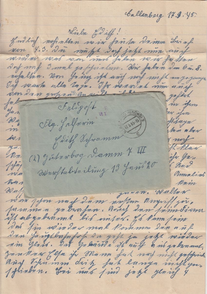 Jüterbog Damm war Feb bis Apr 1945 noch Einsatzflugplatz der III. Grp. JG4 - mit mehrseitigem Inhalt der Eltern aus Callenberg an die Tochter