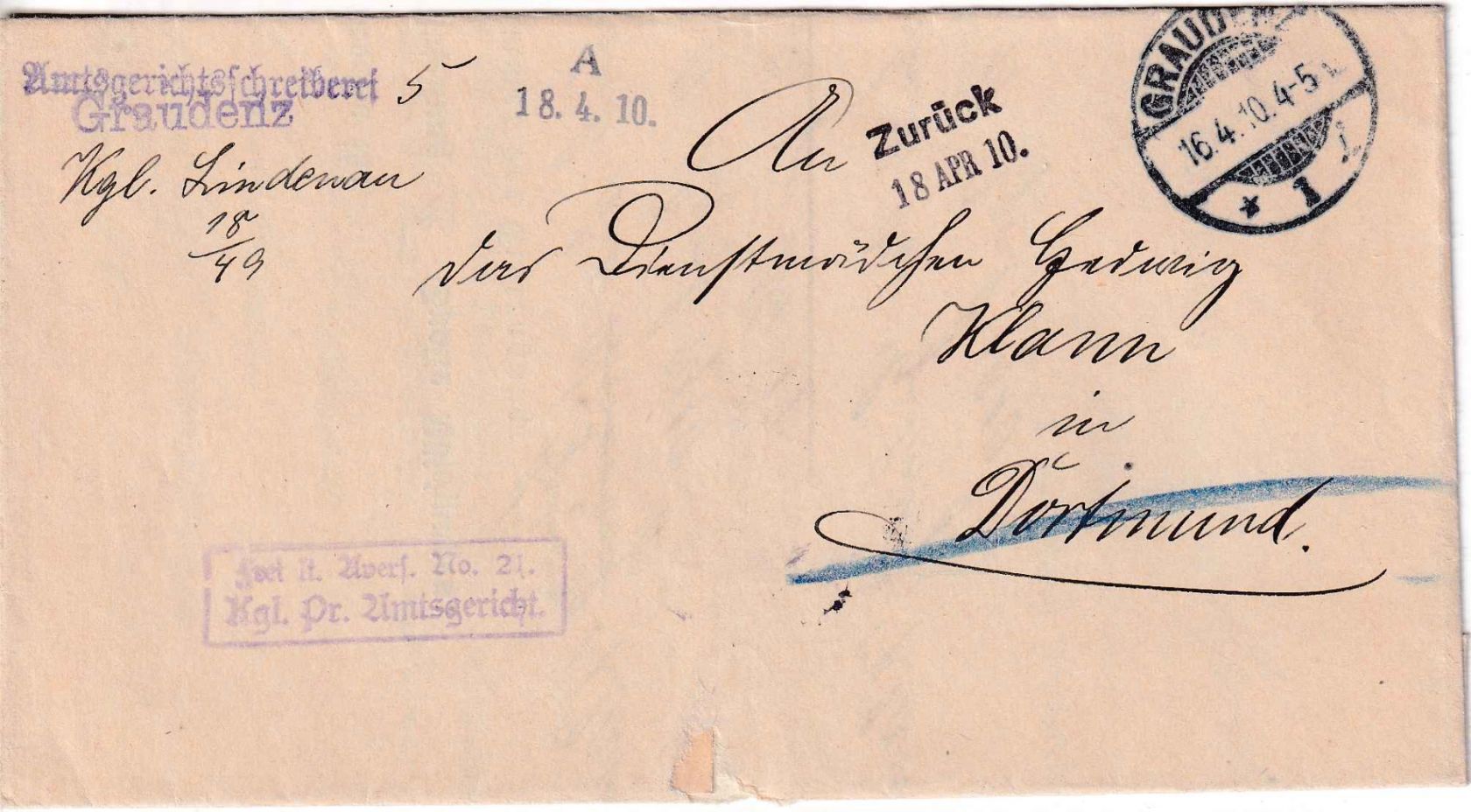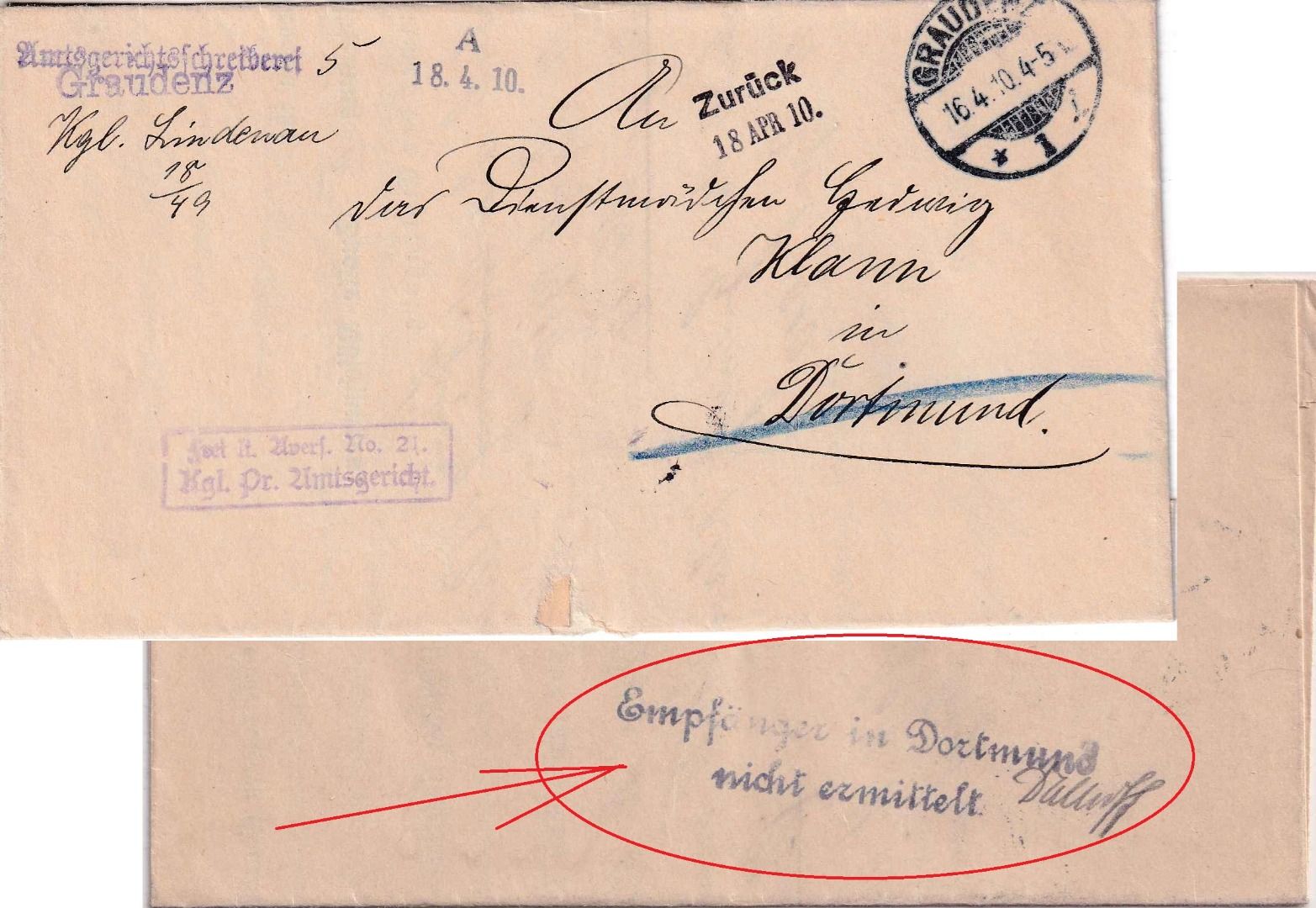 rs. L2 "Empfänger in Dortmund nicht ermittel" - mit Inhalt: Grundbuchsache