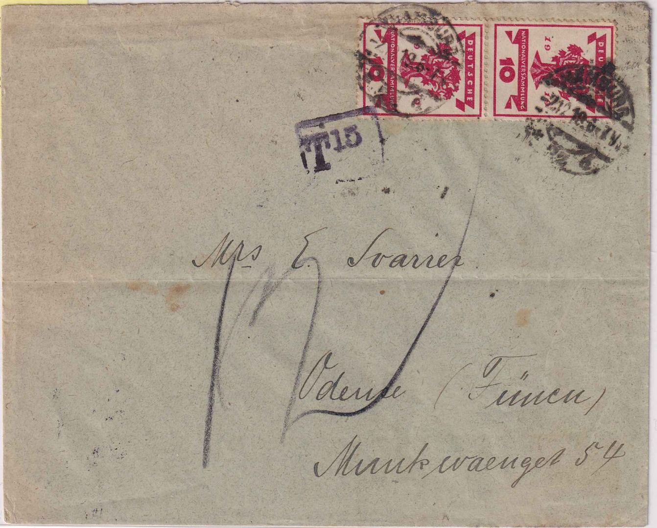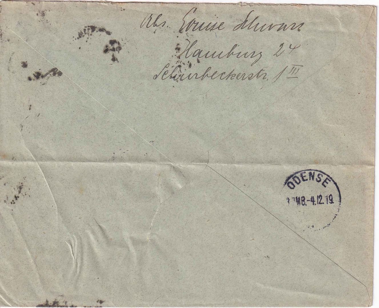 gelaufen n. Odense - obwohl die Ausgabe nicht zur Frankatur ins Ausland zugelassen war, wurde der Brief nur mit der fehlenden Nachtaxe (Tarifumstellung zum 1.10.19 !) belegt - ohne Inhalt