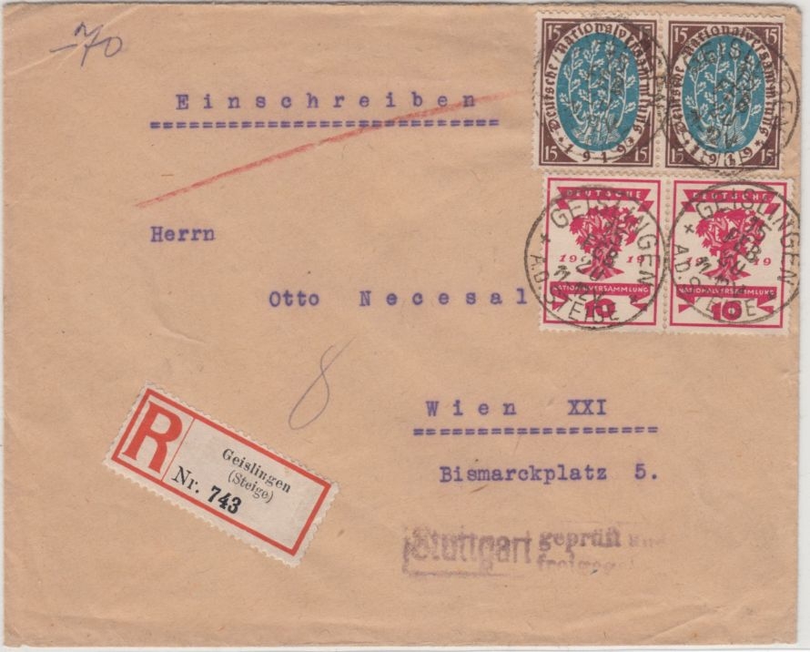 n. Wien 1920 - Zensurstempel Stuttgart - ohne Inhalt