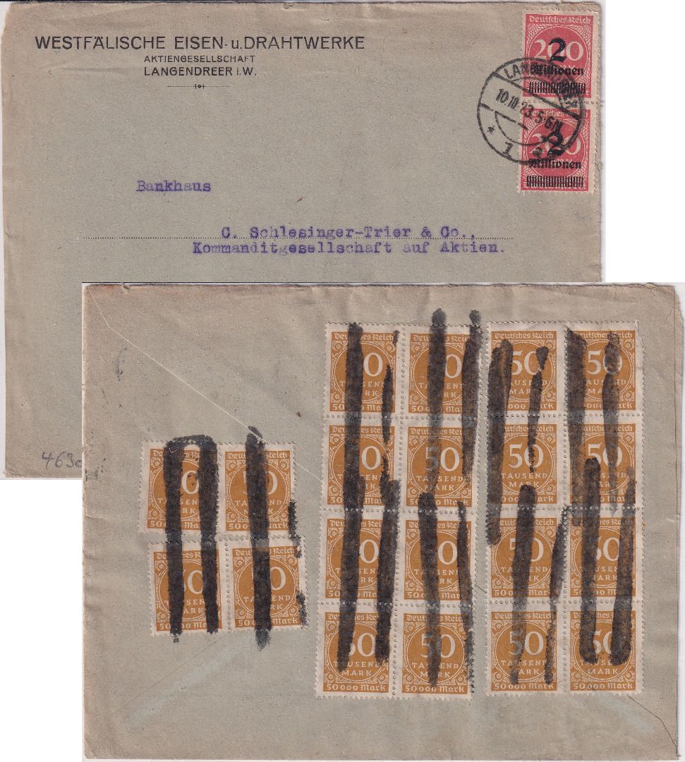rs. noch 20x50.000M. - Kuvert dreiseitig offen - Ersttag neue Portoperiode (10.10. bis 20.10.23) - ohne Inhalt