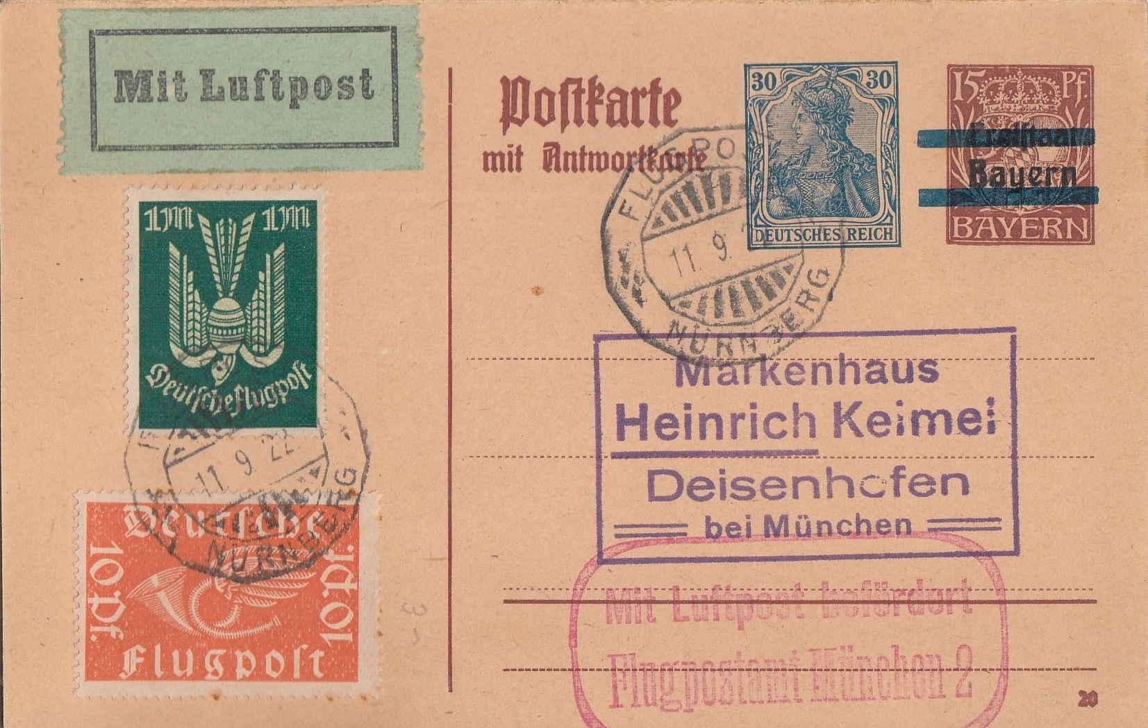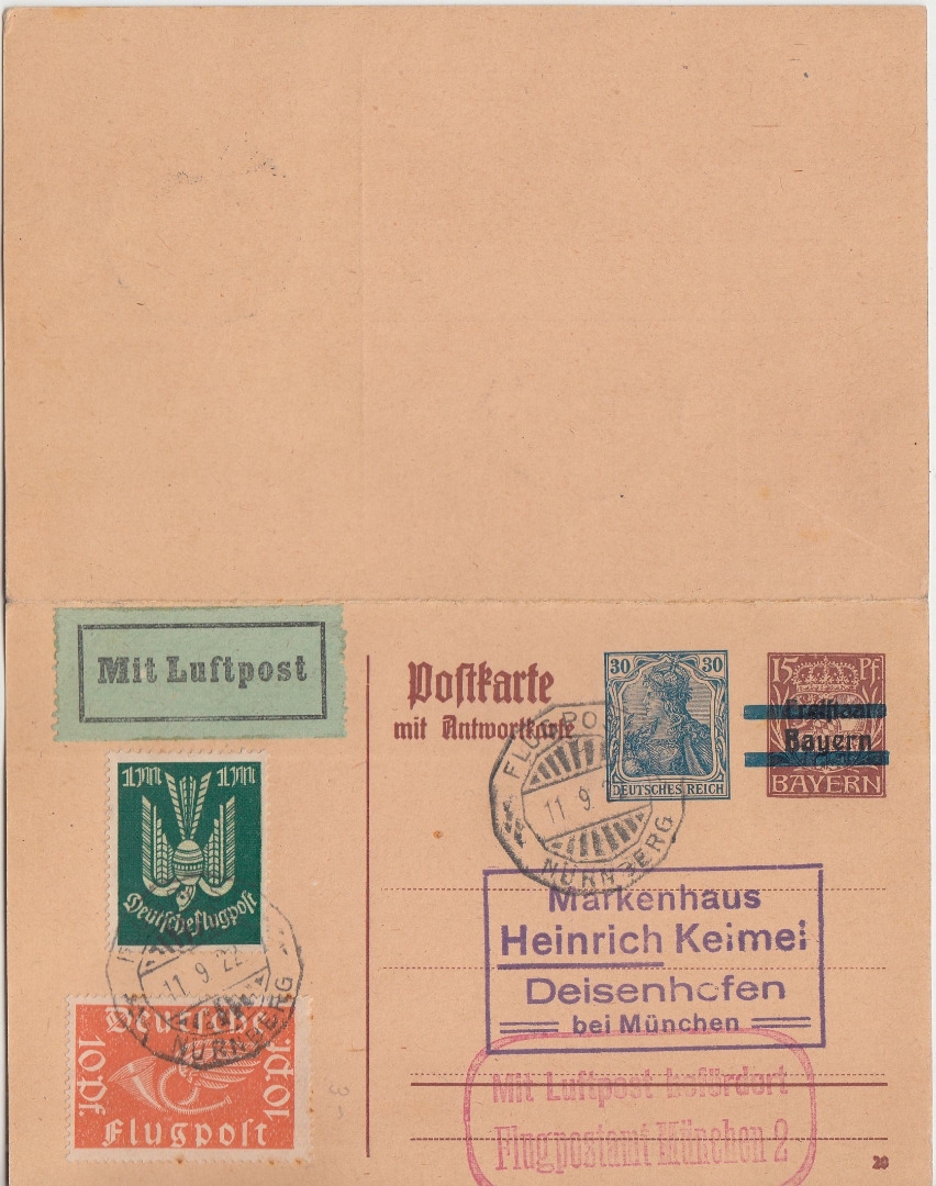 ggelaufen nn. Deisenhofen b. München - "Keimel"-Beleg - A-Teil ungebraucht anhängend