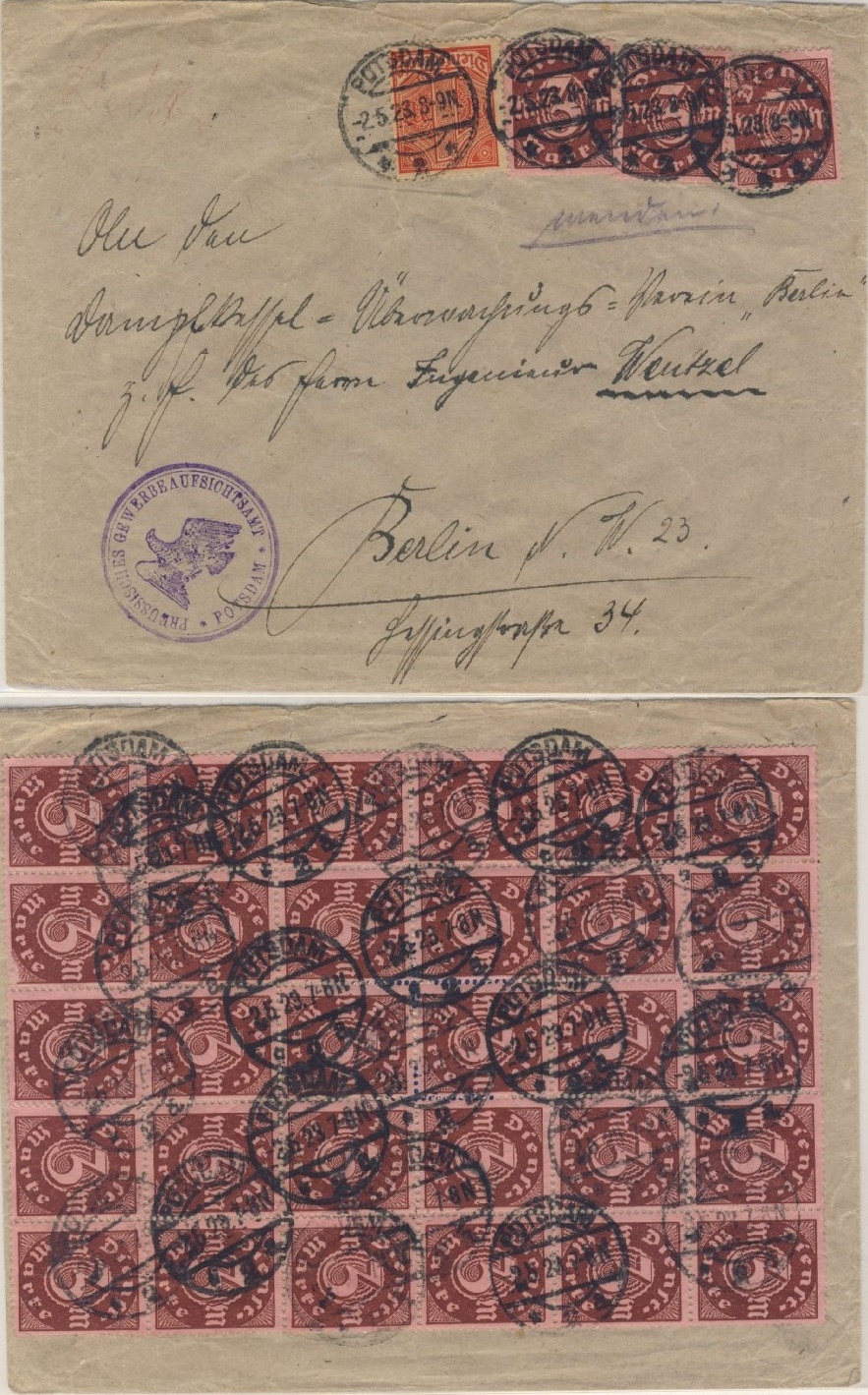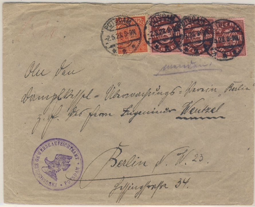 DR-Infla - 33x3 + 1 M. Dienst, Brief Potsdam - Berlin 2.5.23