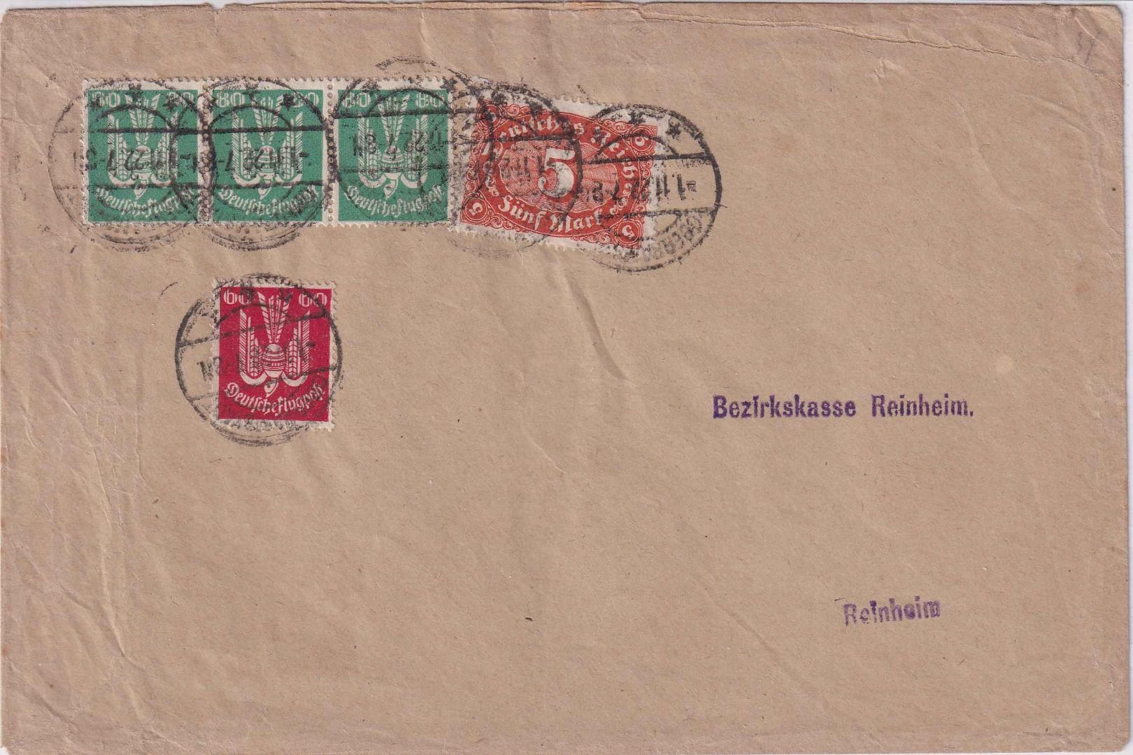 DR-Infla - 3x80 Pfg. Holztaube u.a. Brief Oberramstadt - Reinheim 1.11.22