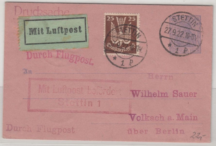 n. Volkach - Luftpost-Leitstpl. Stettin u. Berlin - ohne Inhalt
