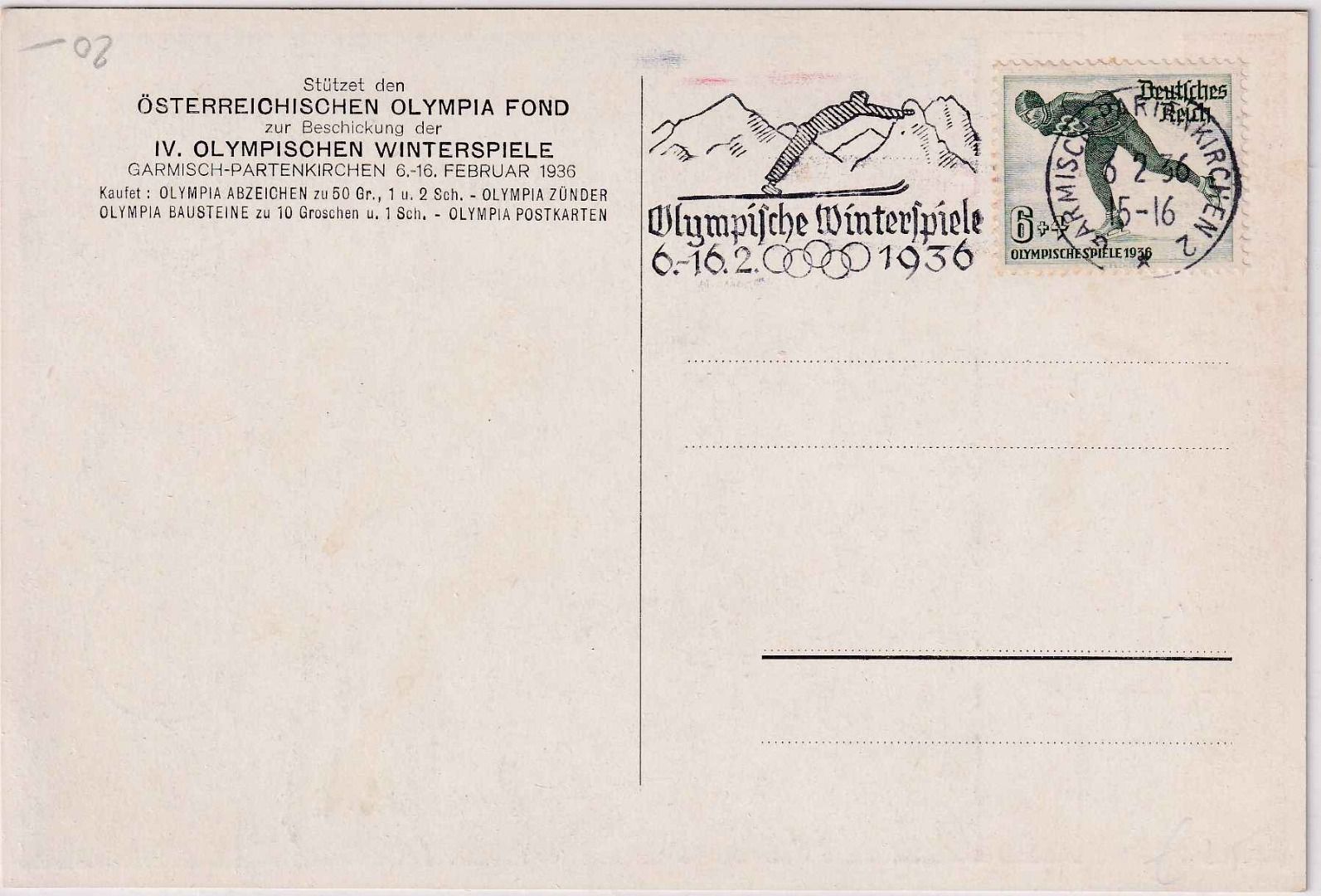 Sonderkarte des Österr. Olympia-Fonds - Masch.werbestempel GAP 6.2.36 (Tag der Eröffnungsfeier)