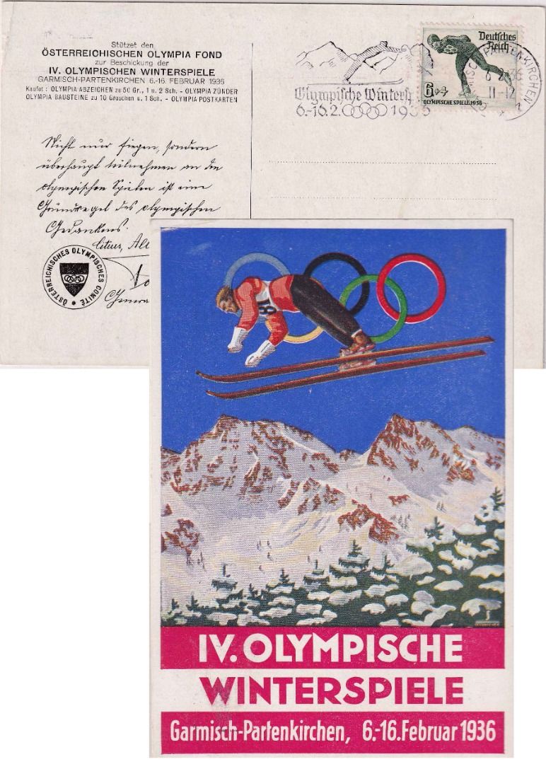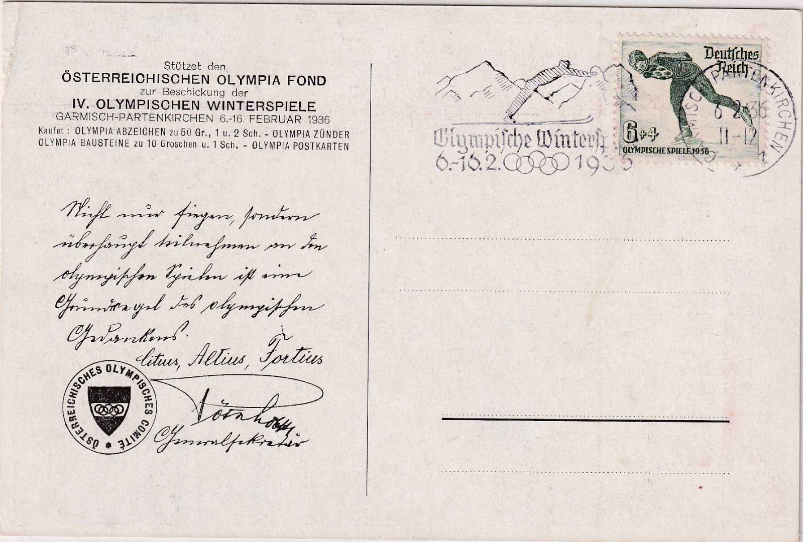 Sonderkarte des Österr. Olympia-Fonds - Masch.werbestempel GAP 6.2.36 (Tag der Eröffnungsfeier)