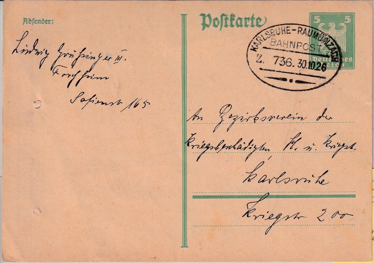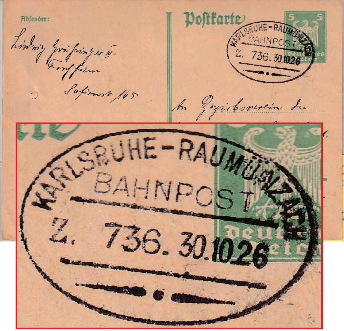 gelaufen n. Karlsruhe - kl. Aktenloch links sauber verschlossen - seltene kleine Nebenstrecke !