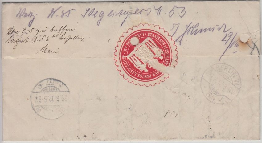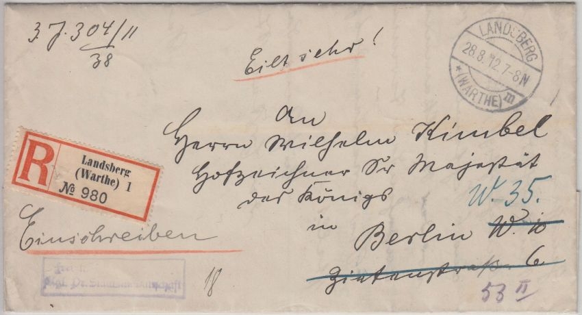 Nachsendung innerhalb Berlin - mit Inhalt - adr. an Wilhelm Kimbel "Hofzeichner Sr. Majestät des Königs" (*1868 +1965 - siehe auch Wikipedia)