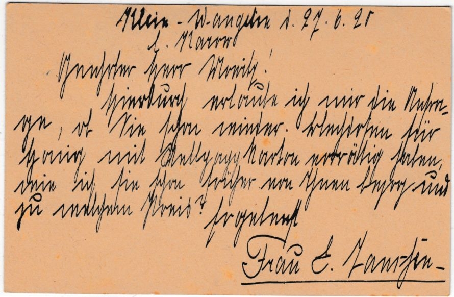 v. Klein-Wangelin n. Doberan - leicht altersfelckig