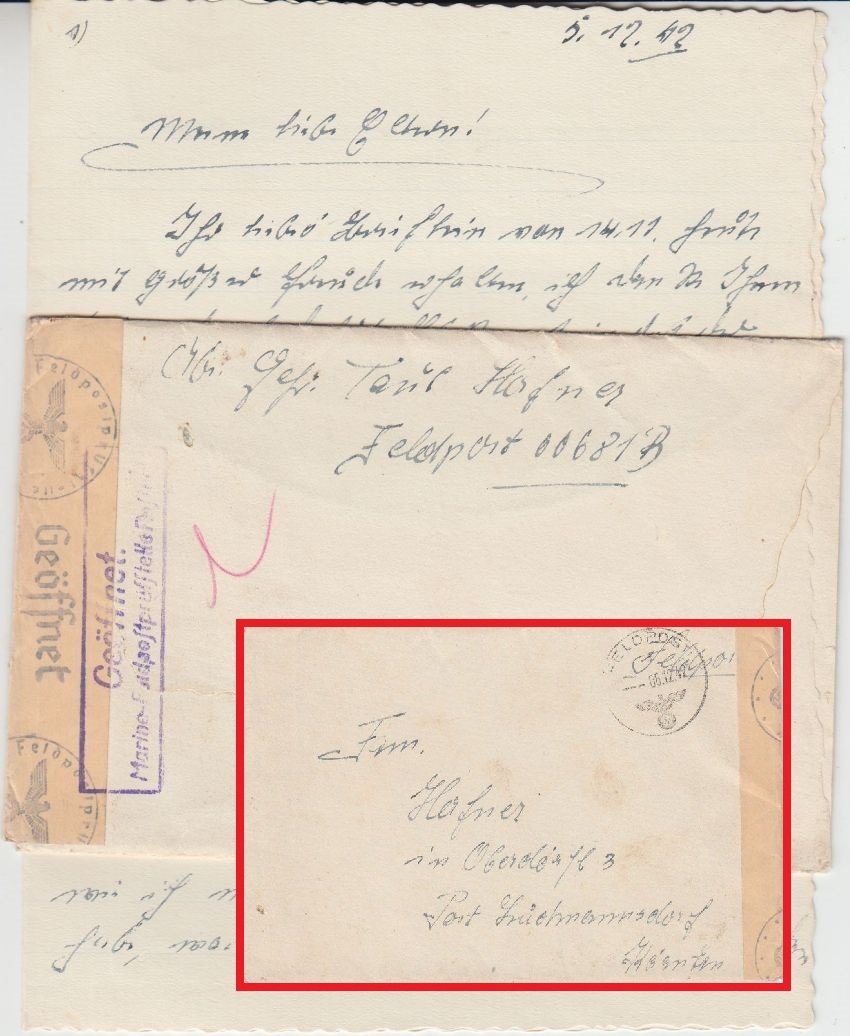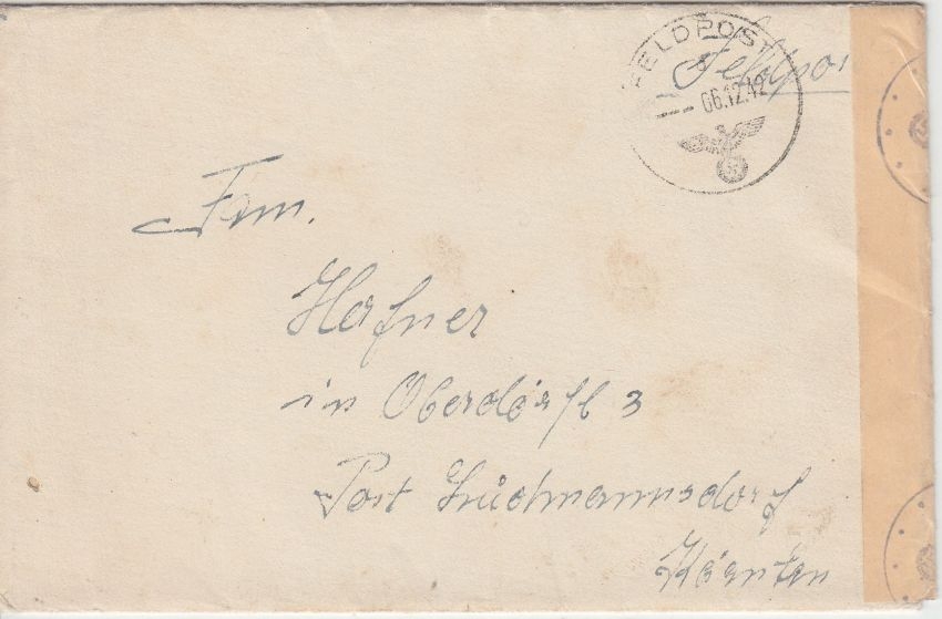 nach Ludmannsdorf (Kärnten) - Fp.Nr. 00681 = Stab, 4. u. 6. Battr. Mar.Art.Abtl. 508 (Kopenhagen) - mit Inhalt