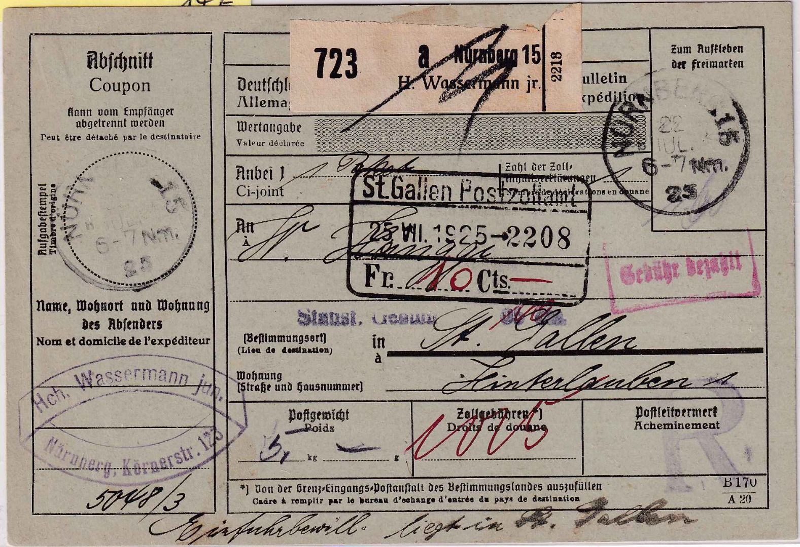 gelaufen n. St. Gallen - Selbstbucher H. Wassermann (Lederwarenfabrik)