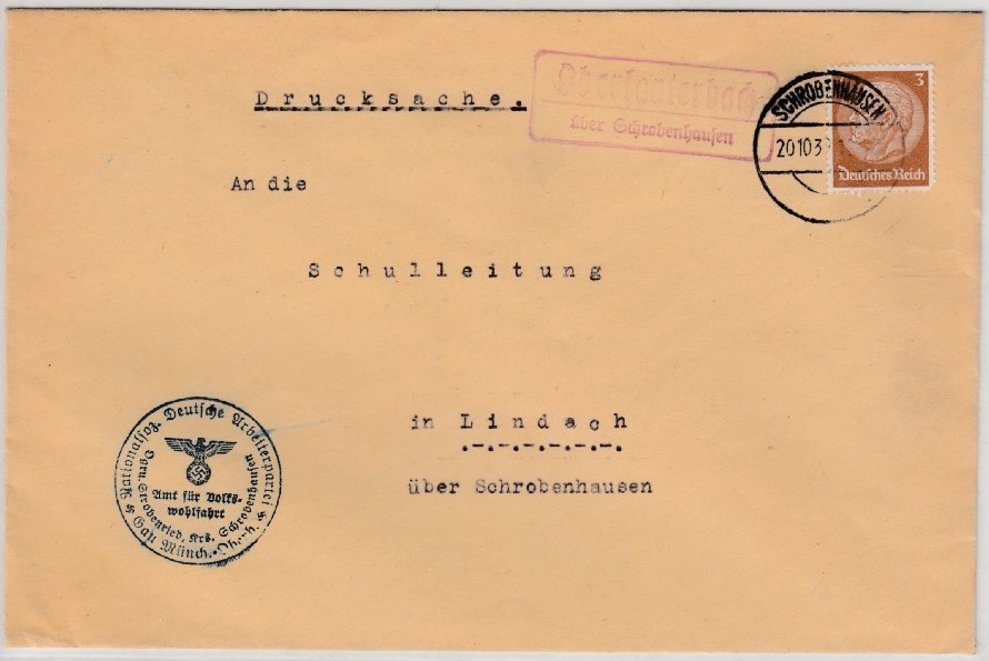 ohne Inhalt - Marke re. unten eckrund - Abs. NSDAP-Amt f. Volkswohlfahrt