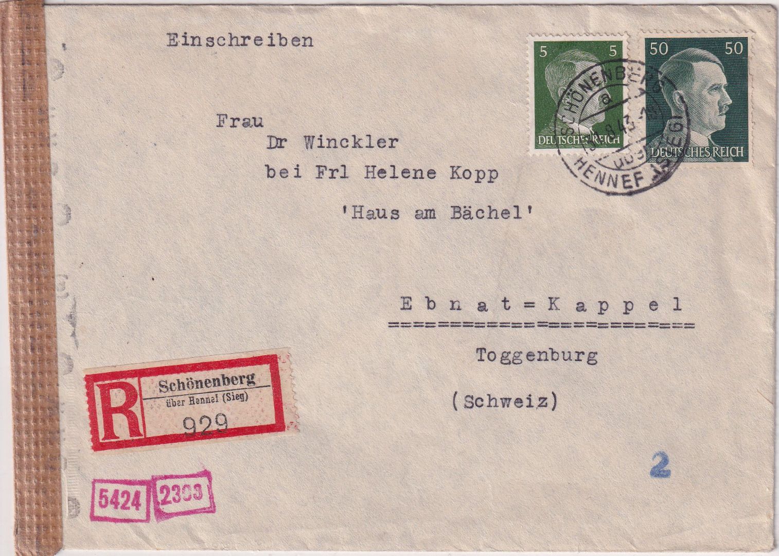 gelaufen i.d. SCHWEIZ (Ebnat-Kappel) - OKW-Zensurverschluss - ohne Inhalt