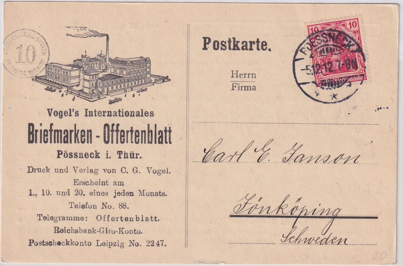 kl.Einkreiser "10 - Porto-Controll-System Fa Custos Duisburg" - relativ frühes Datum (FD ab 1911)