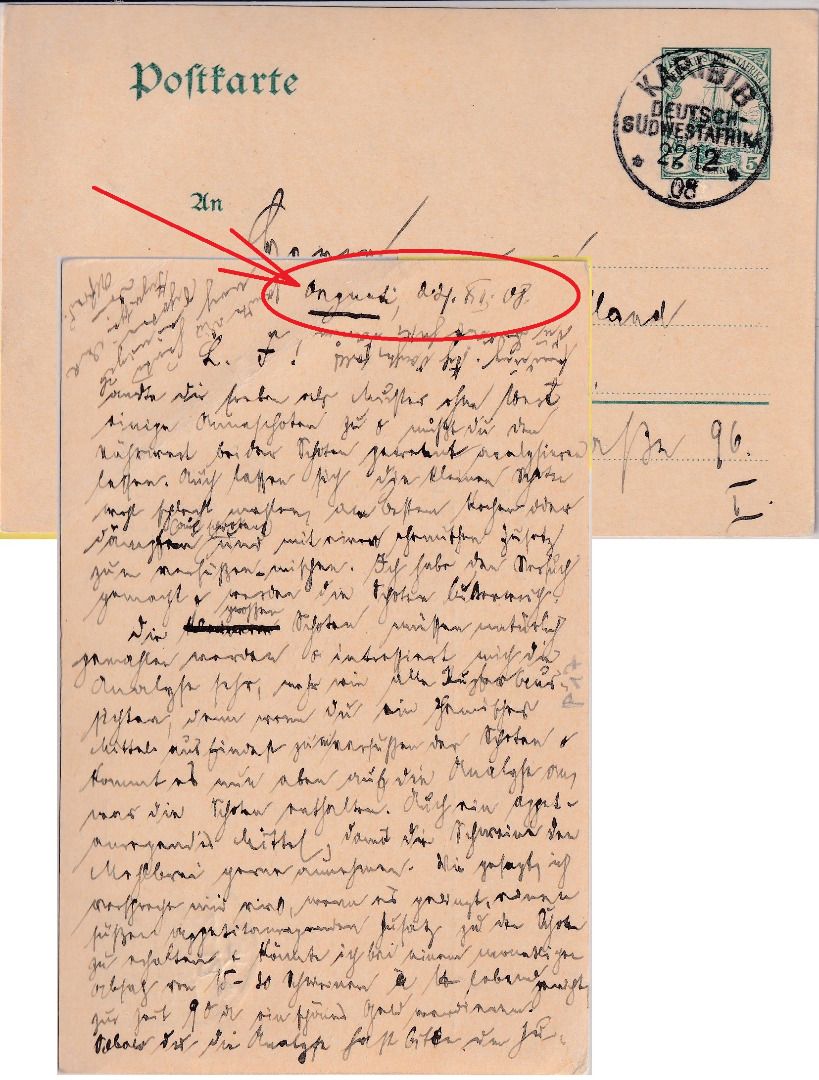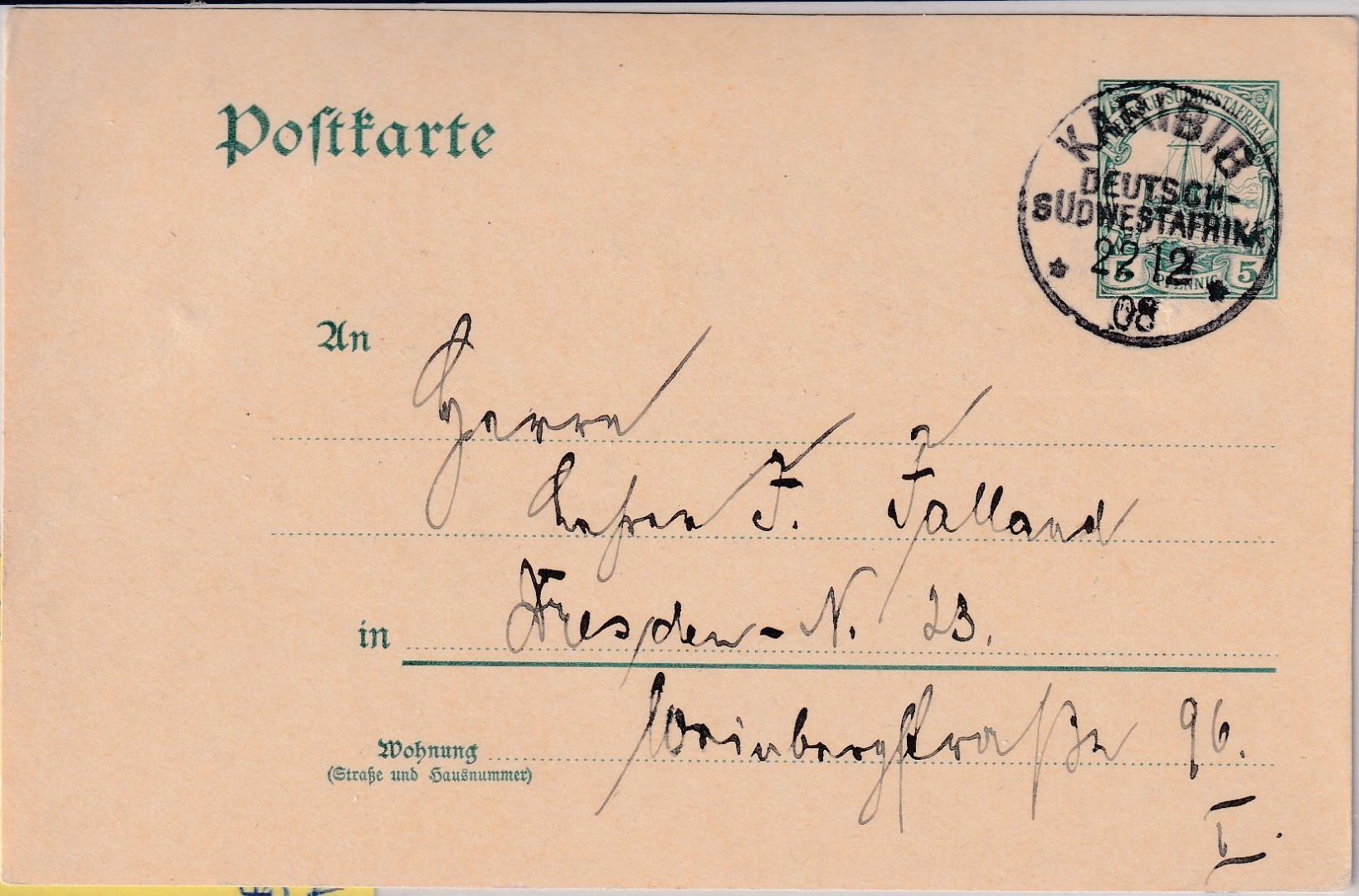 handschr. Absender v. Onguati (Station an der Otavibahn)