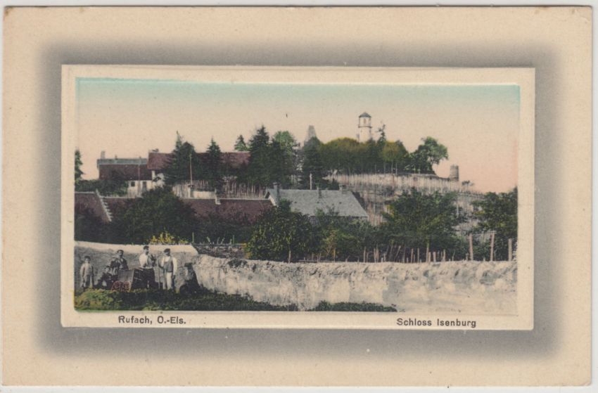 Elsass - Rufach, Schloss Isenburg, Passepartout-Prägekarte ungelaufen ca. 1910