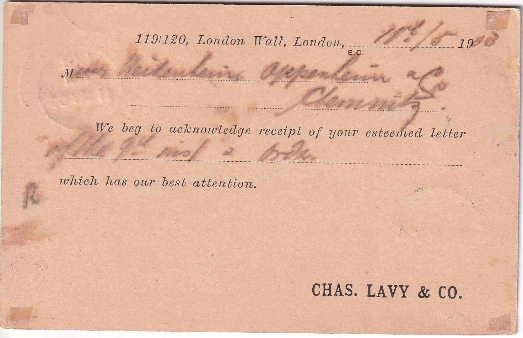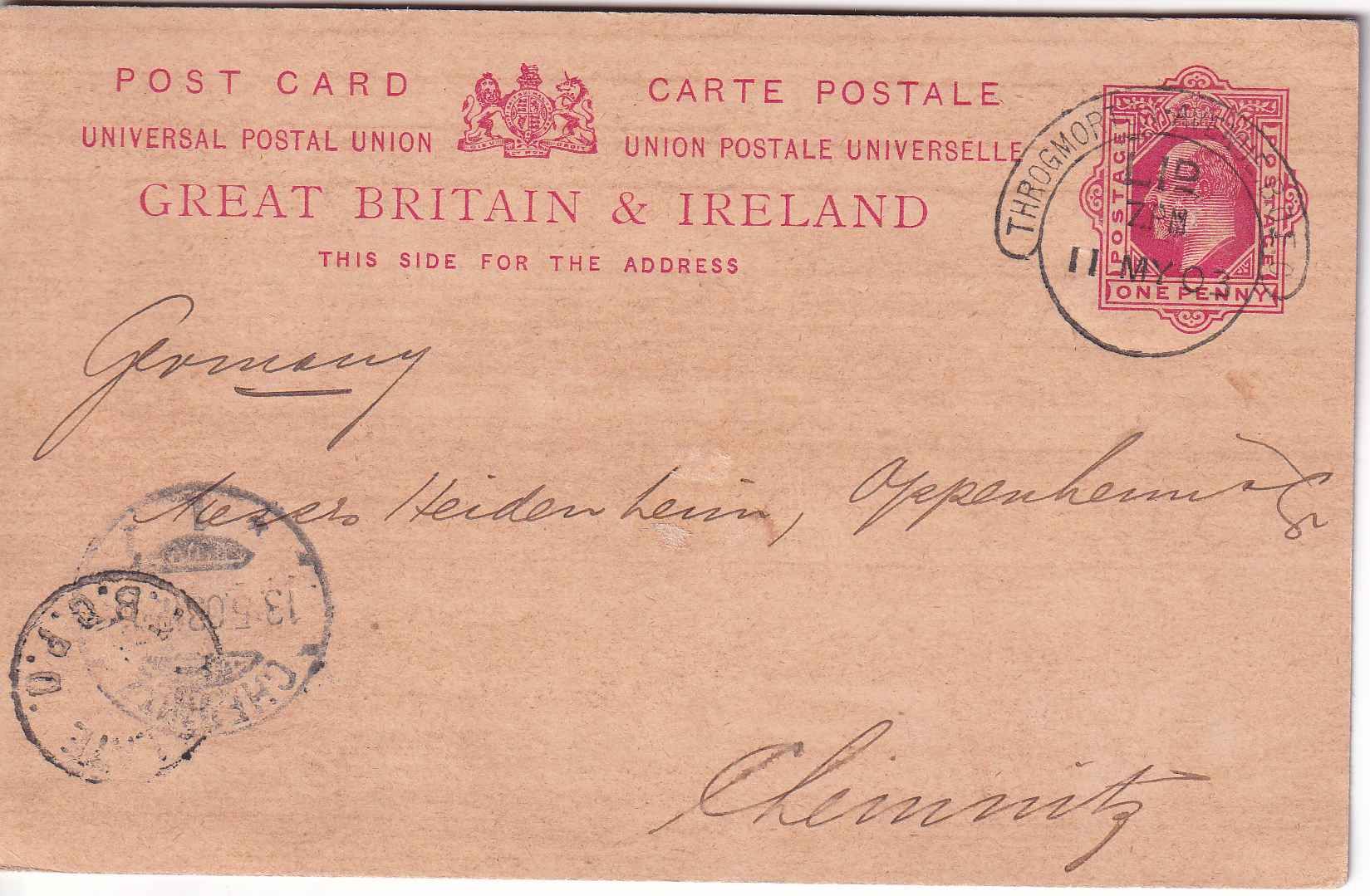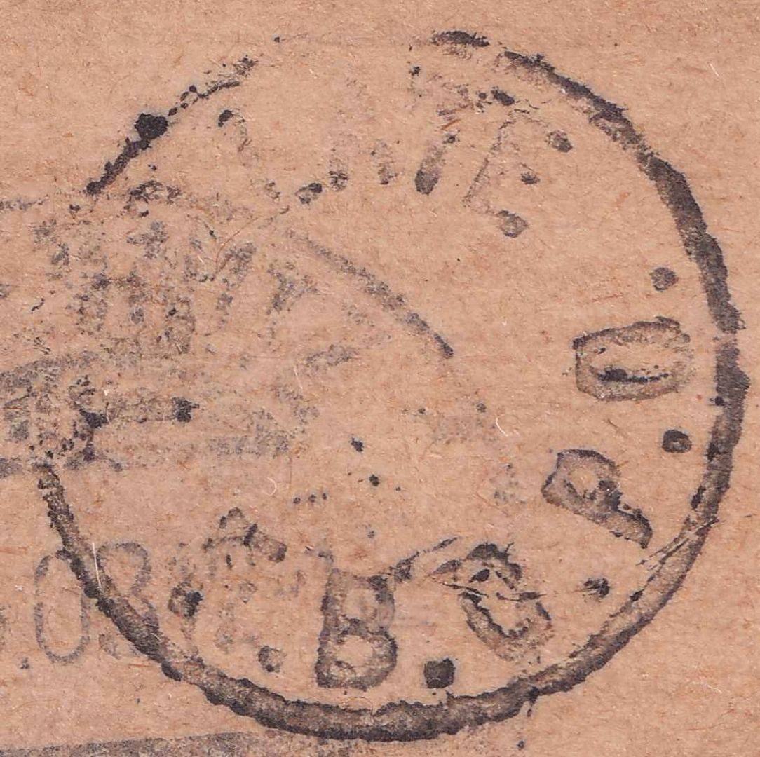 kl. K1 vds. links unten: "Too late F.B.G.P.O." (Foreign Branch of the General Post Office)