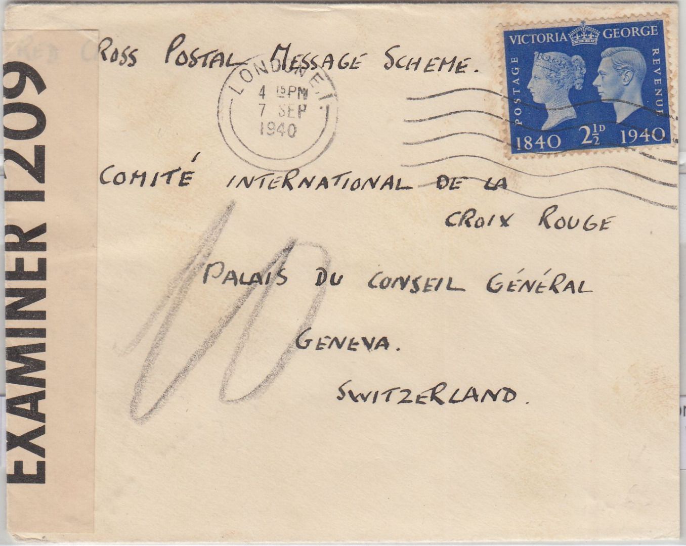 adr. an das Rote Kreuz - britischer Zensurverschluss - ohne Inhalt