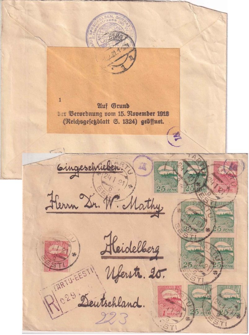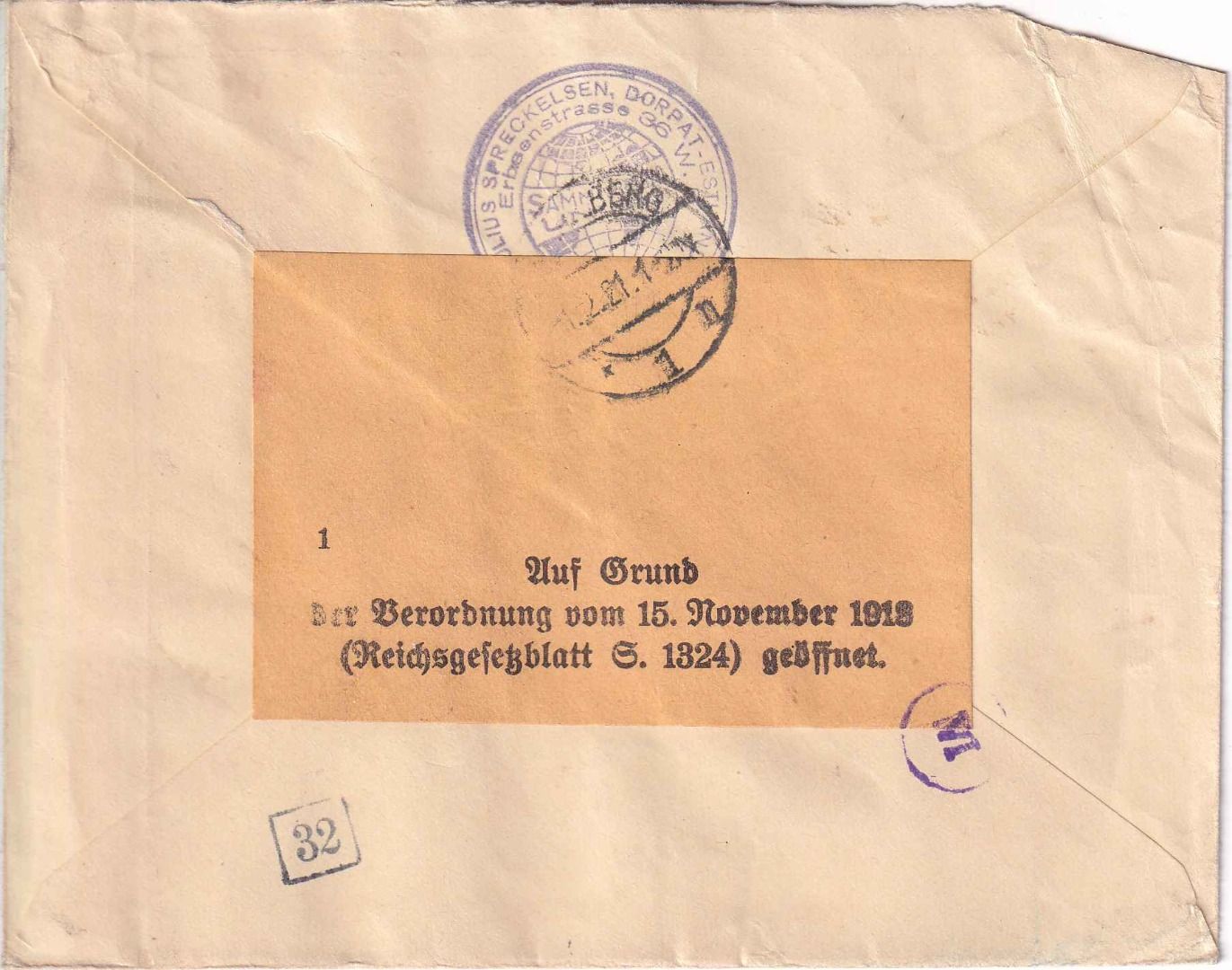 rs. Verschlusszettel "Aufgrund der Verordnung..." - Kuvert links oben kl. Eckmangel - ohne Inhalt