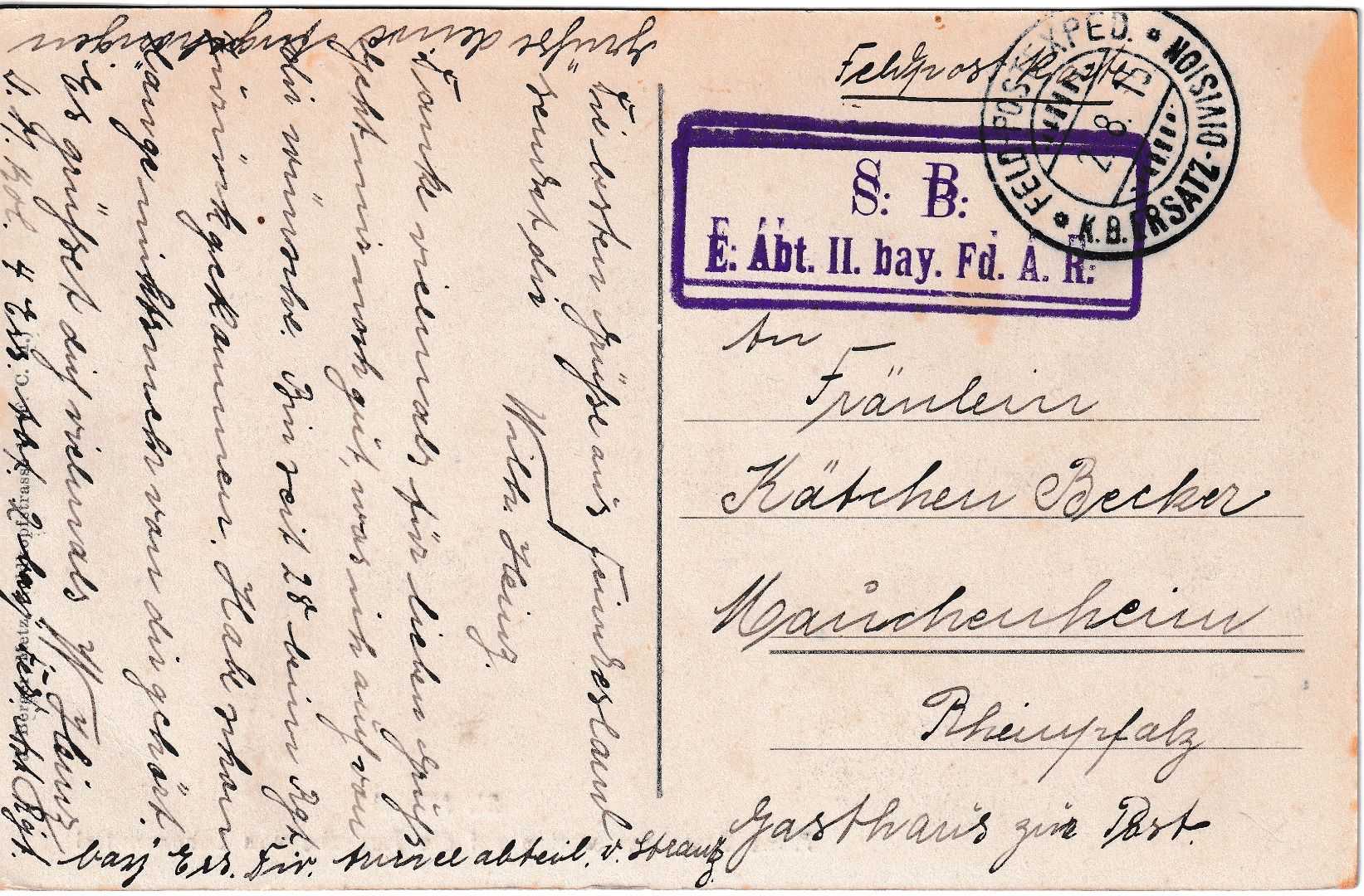gelaufen n. Mauchenheim - Feldpostexp. K.B. Ersatz-Division
