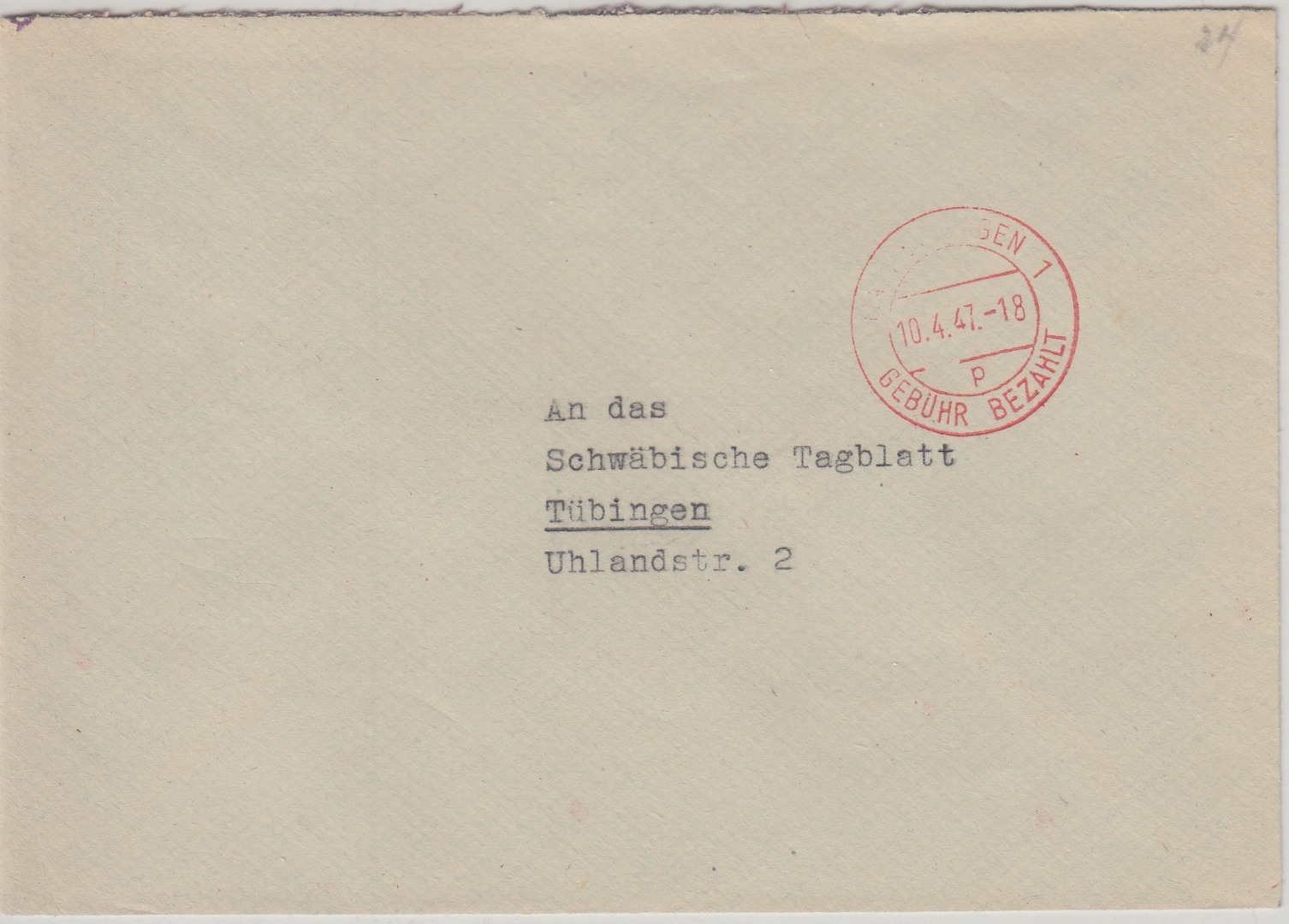 Abs.: Sozialdemokratische Partei Südwürttemberg (Vordruck) - ohne Inhalt