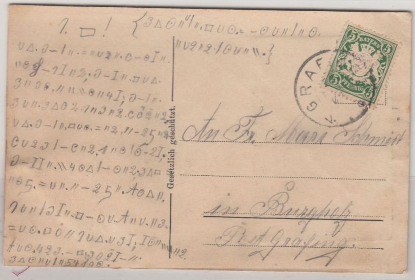 gelaufen v. Grafing mit "verschlüsselten" (Liebes ?)-Grüßen