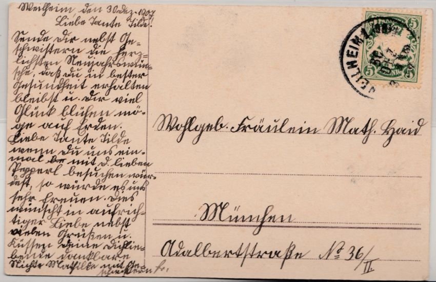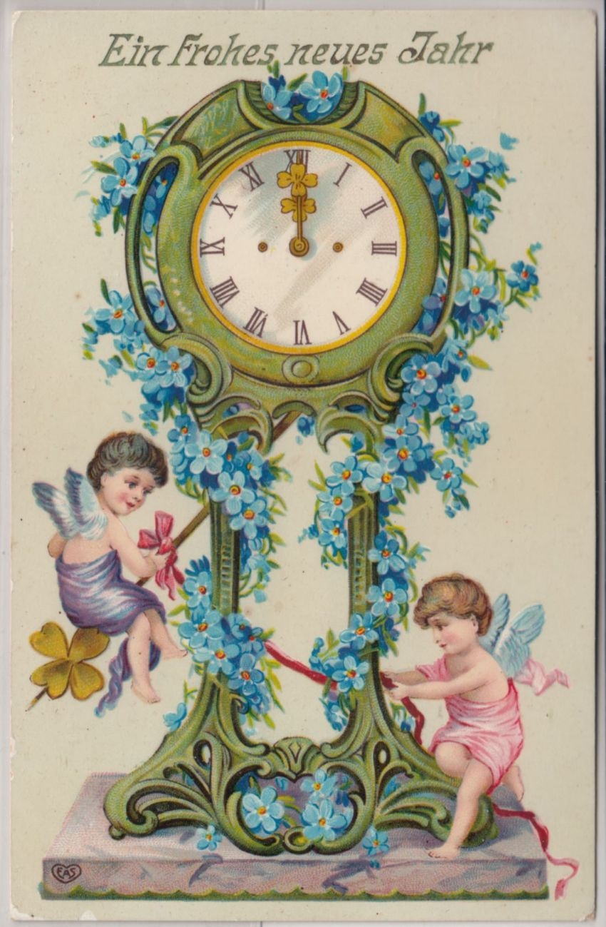 Glückwunsch - Neujahr Uhr mit Engel Farb-AK Weilheim 1907